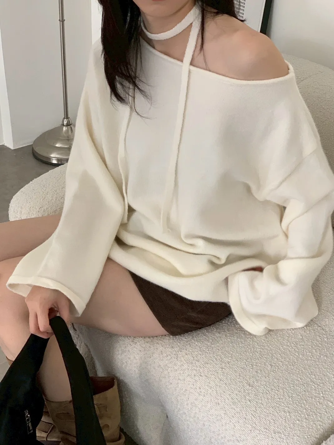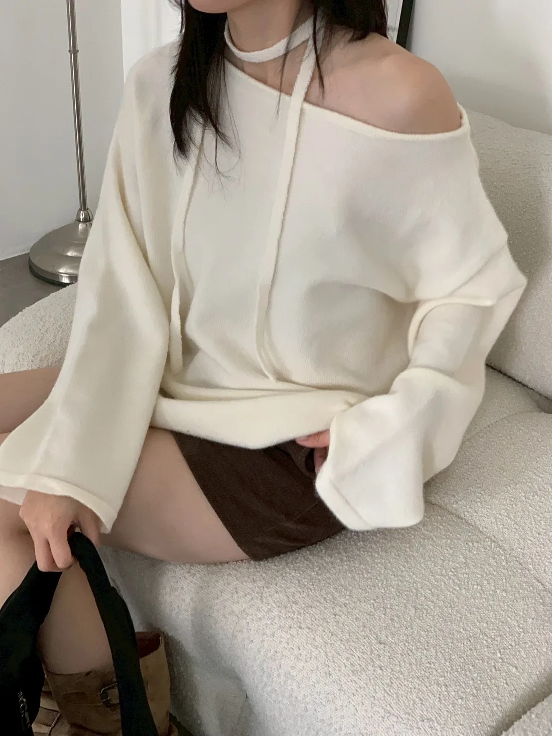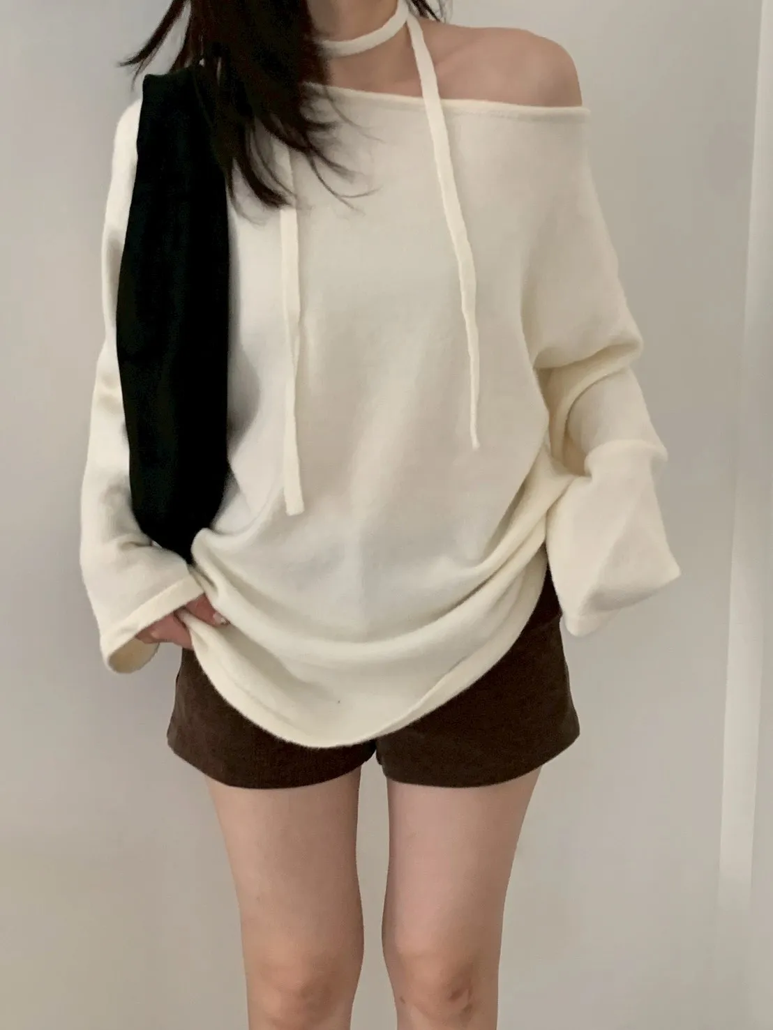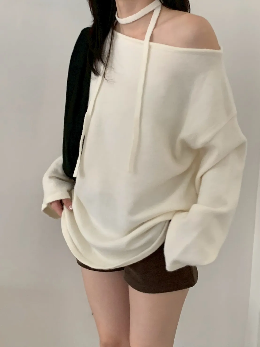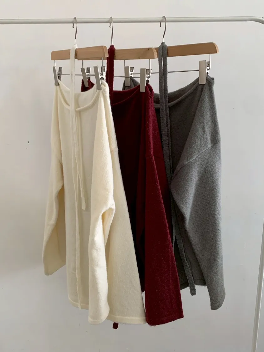 附綁帶 可斜肩寬袖版針織上衣