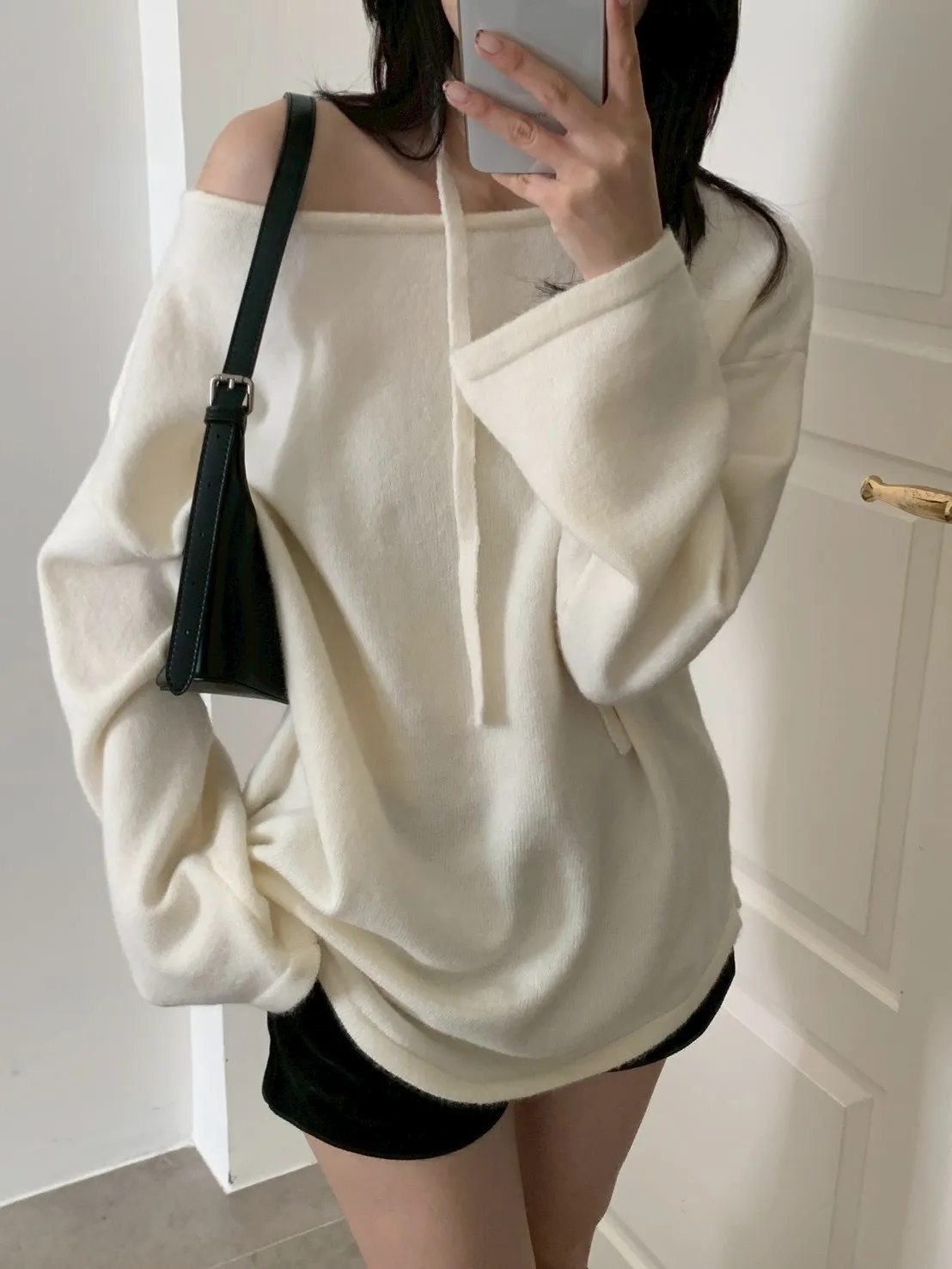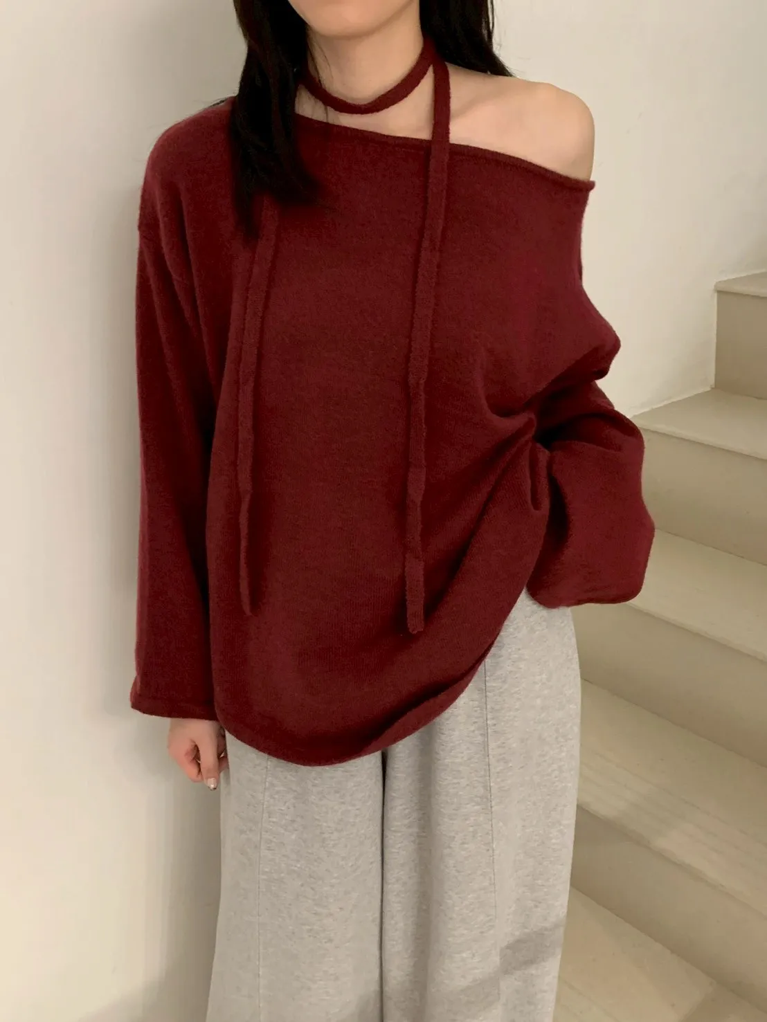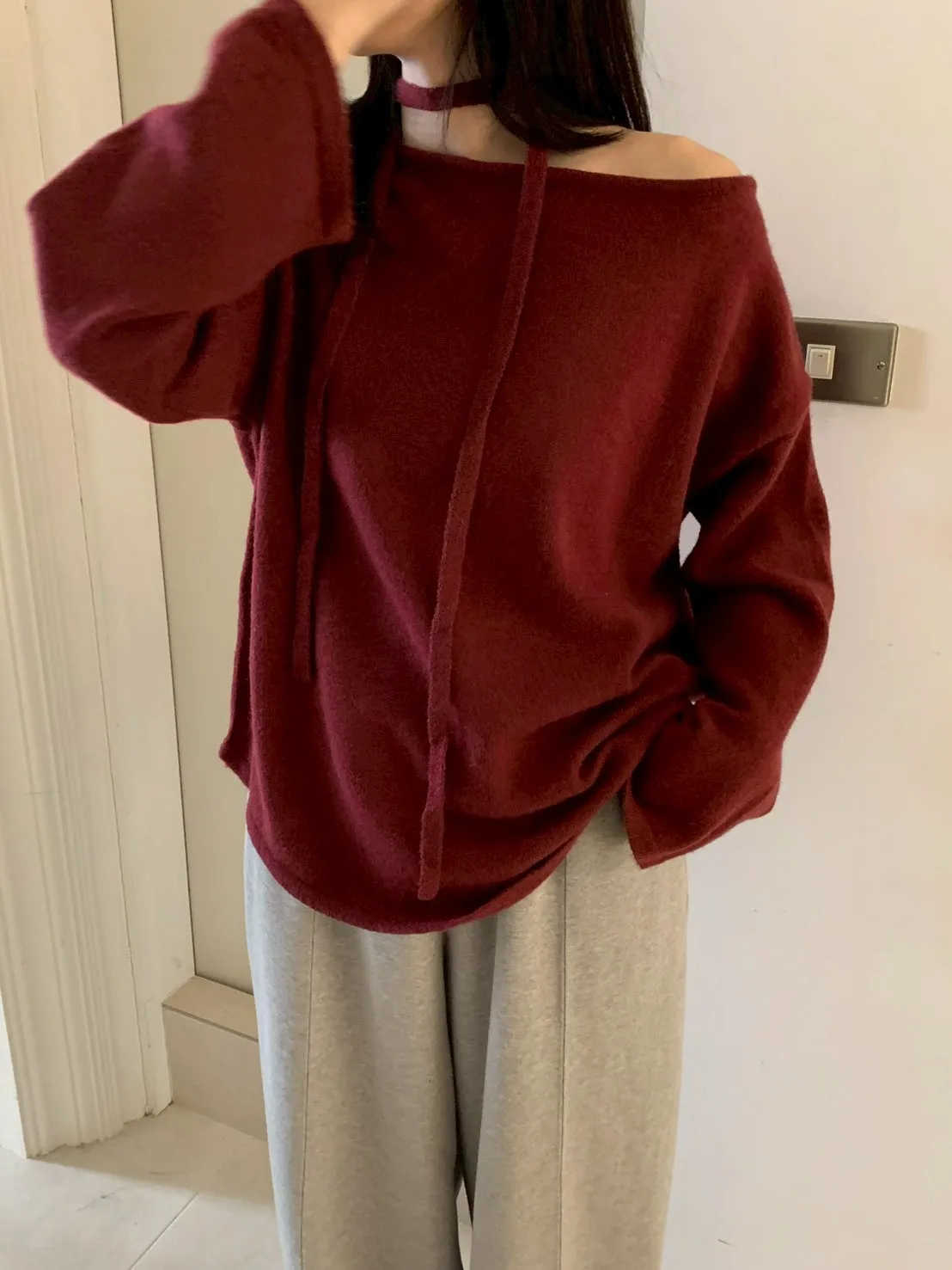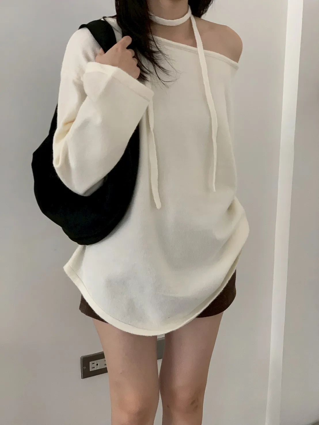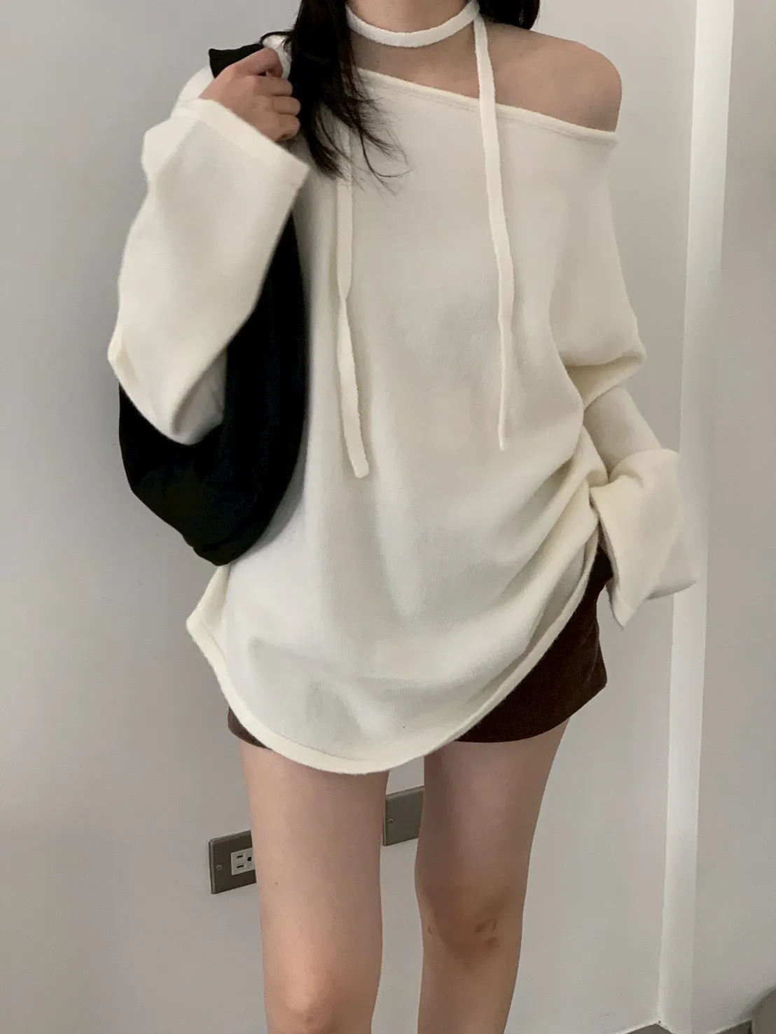 附綁帶 可斜肩寬袖版針織上衣