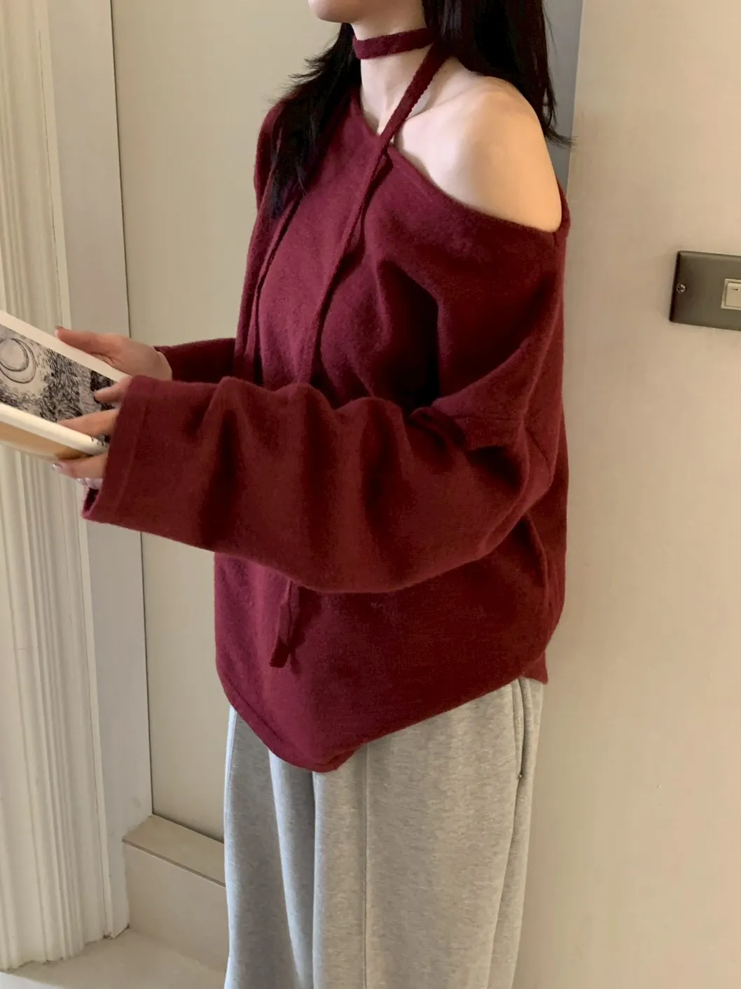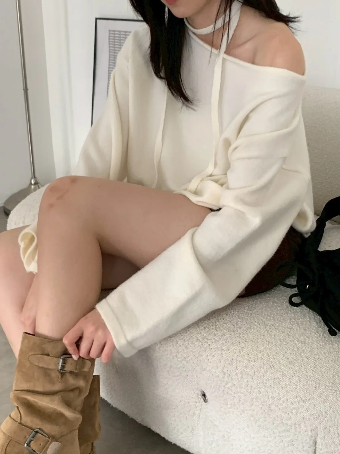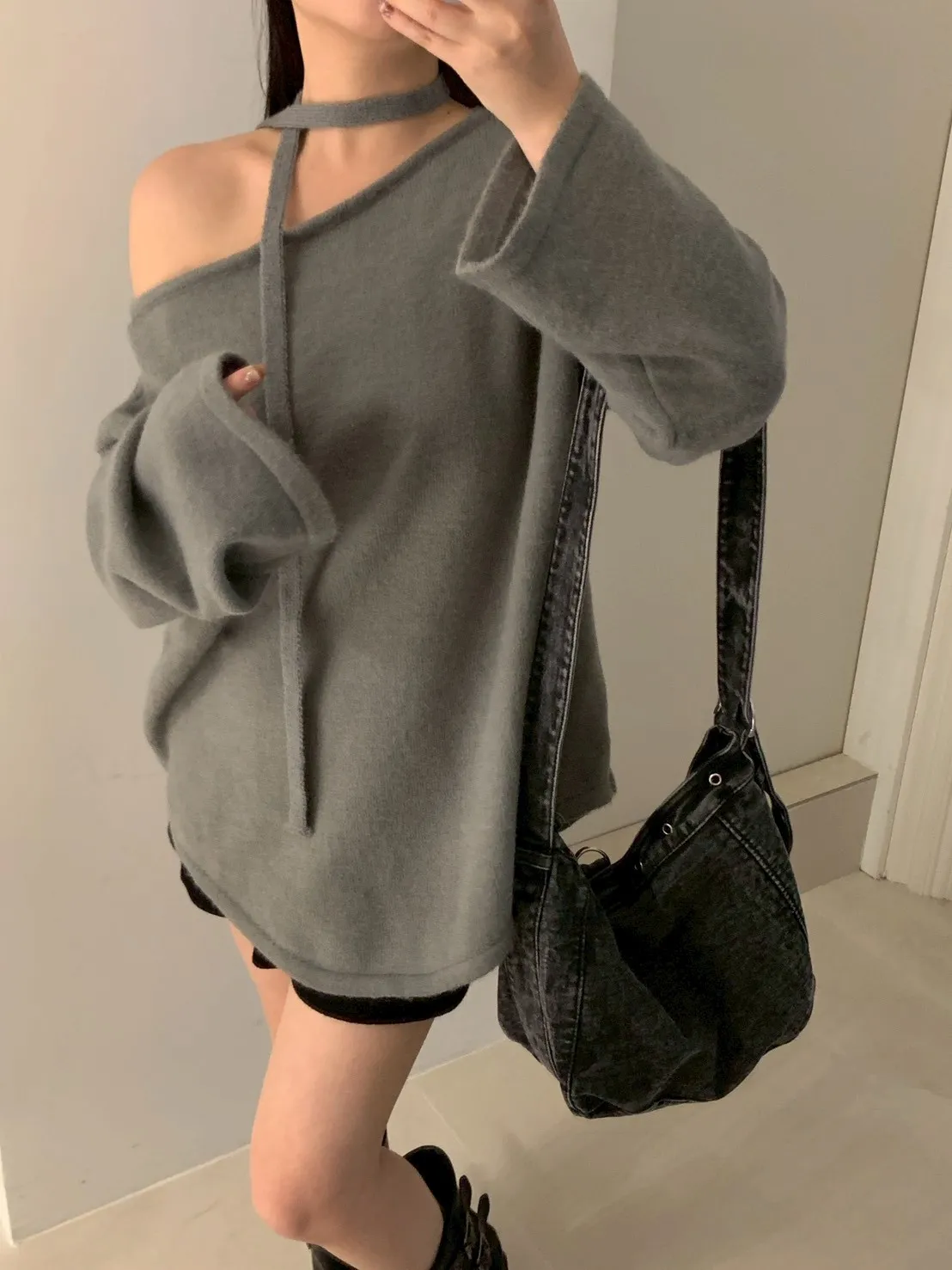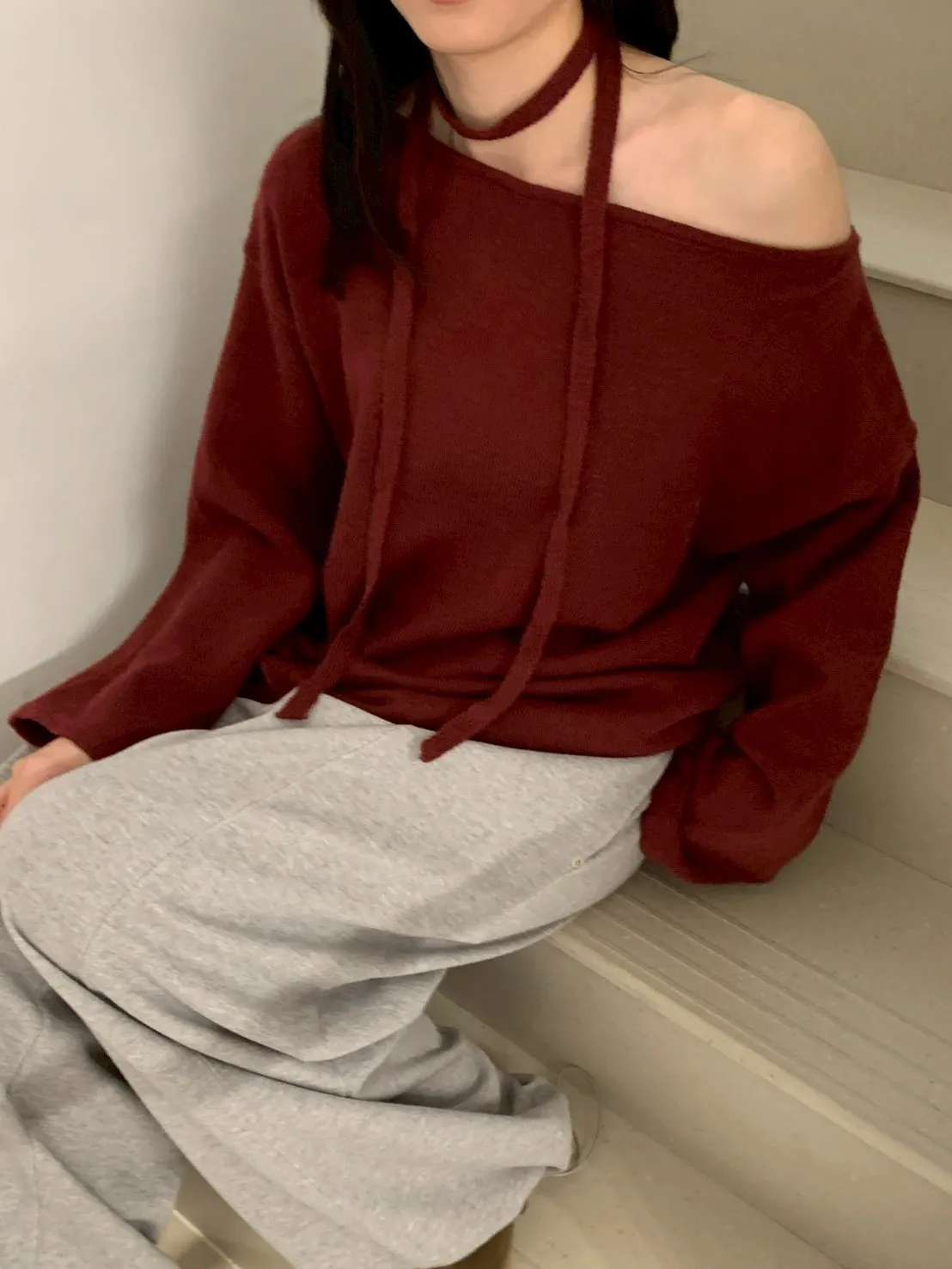 附綁帶 可斜肩寬袖版針織上衣