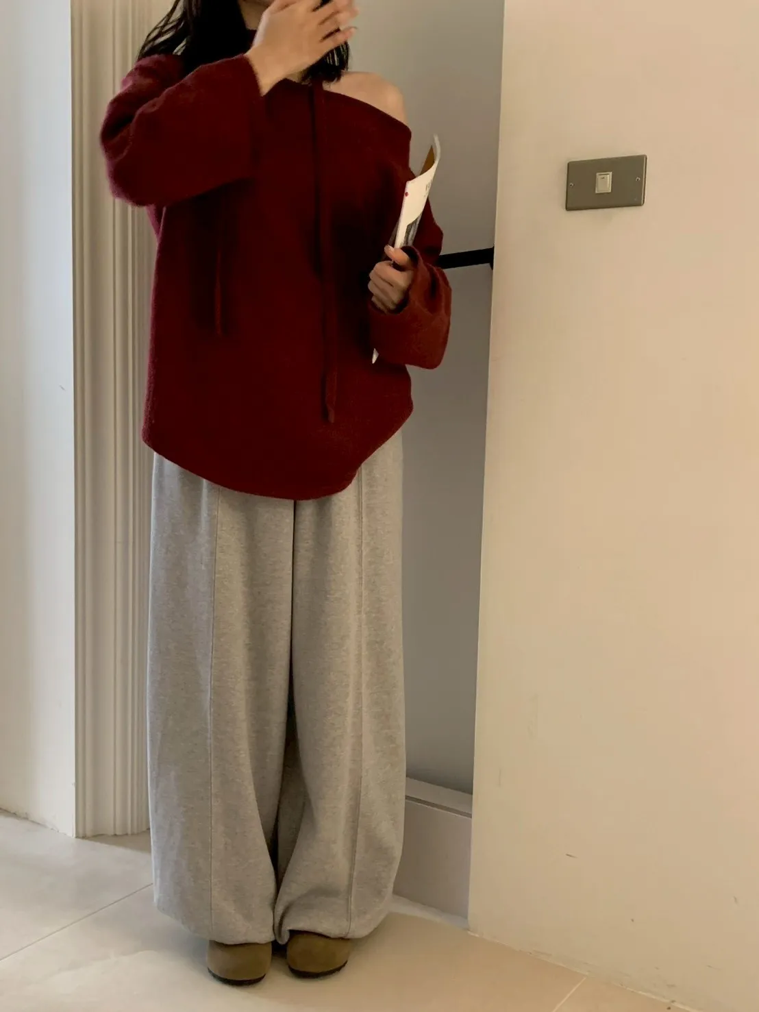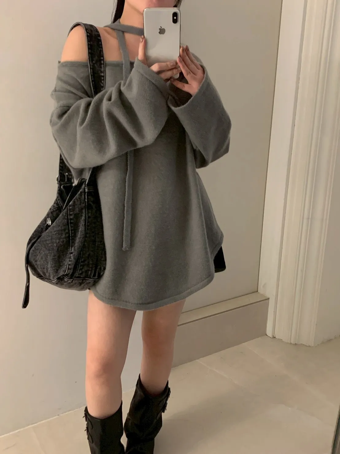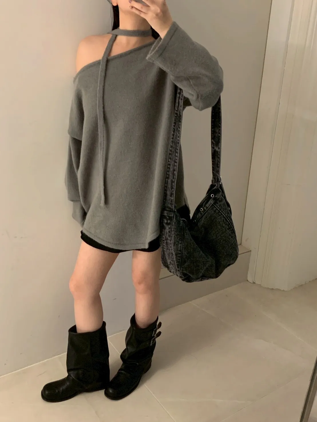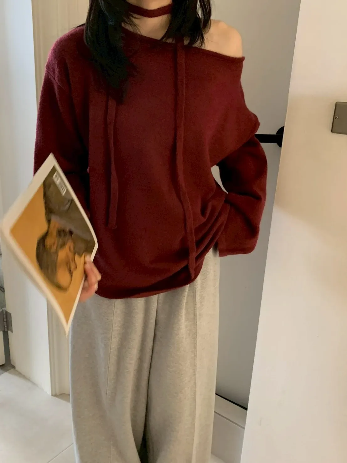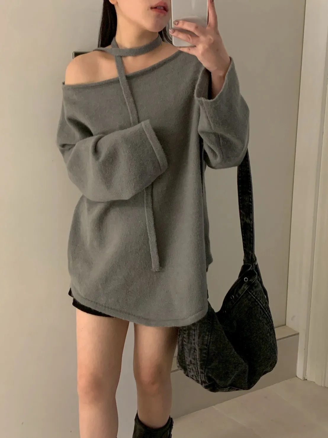 附綁帶 可斜肩寬袖版針織上衣