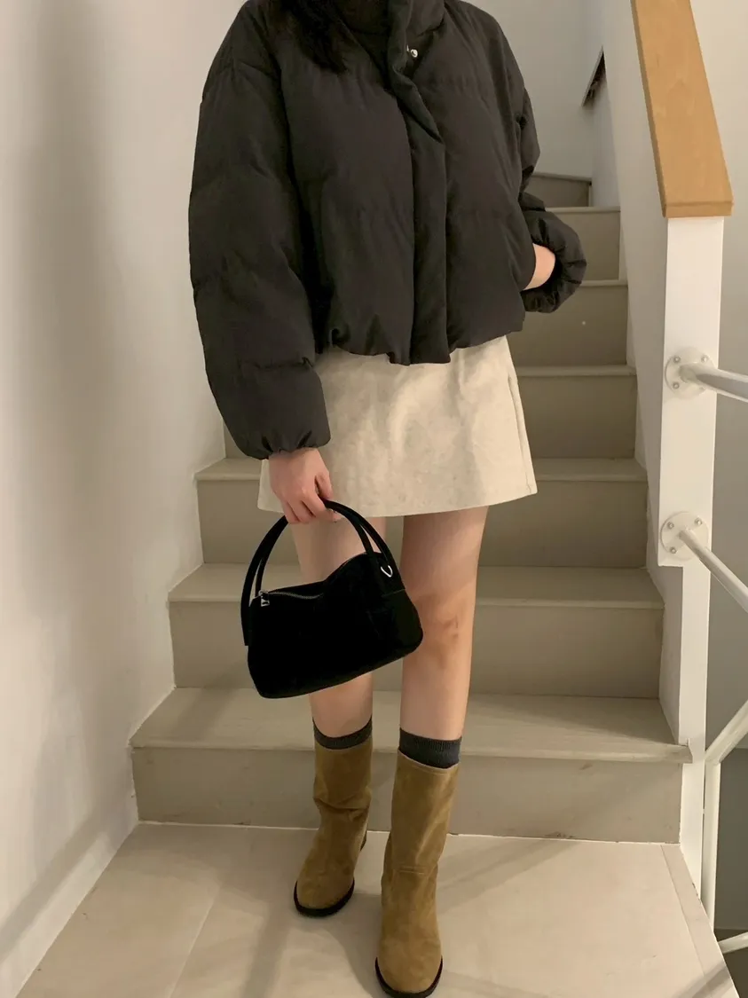 秋日溫柔蜜桃絨拉鍊小包 附背帶