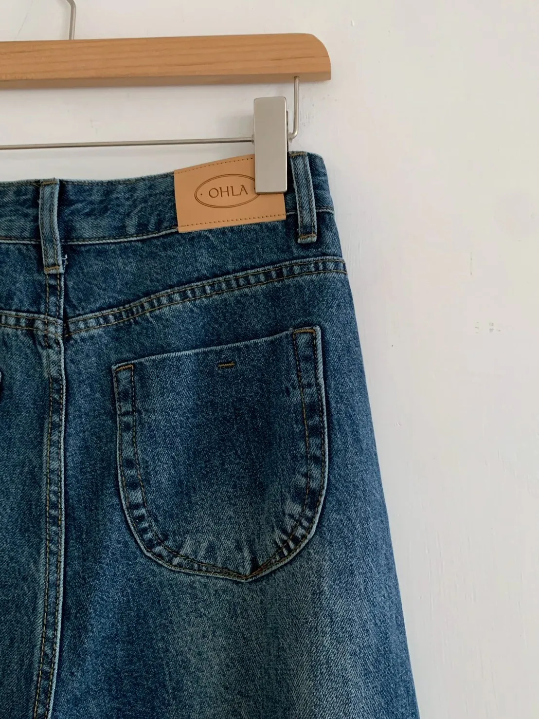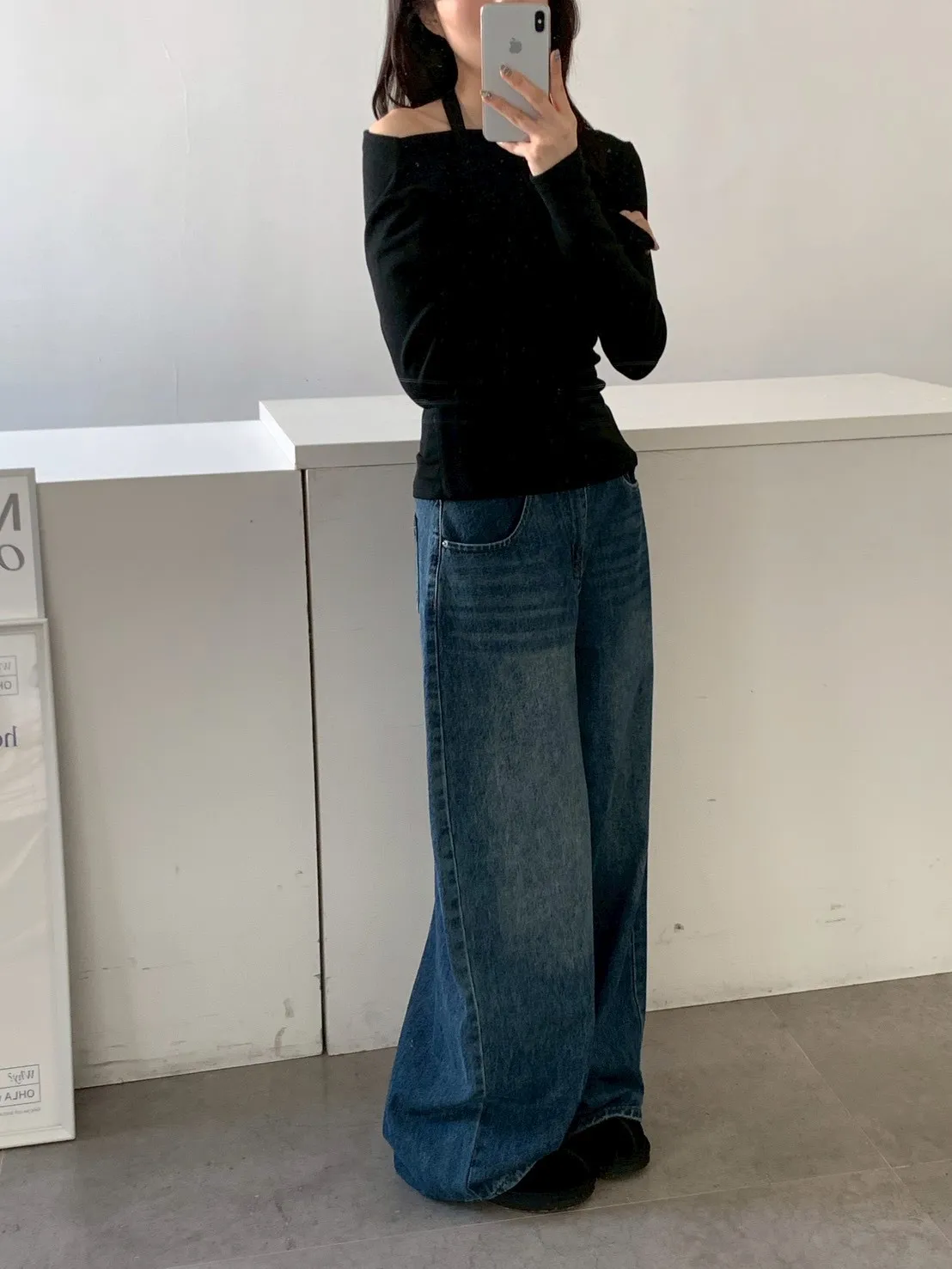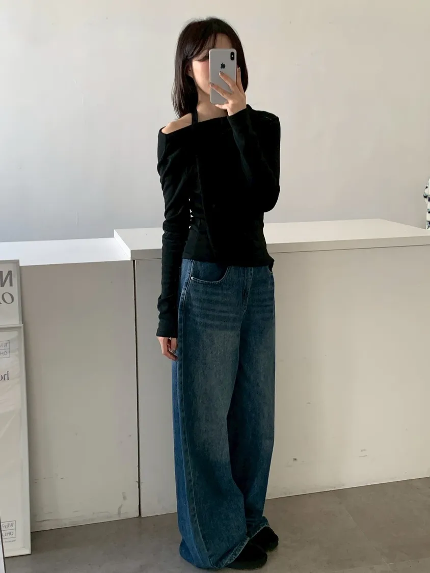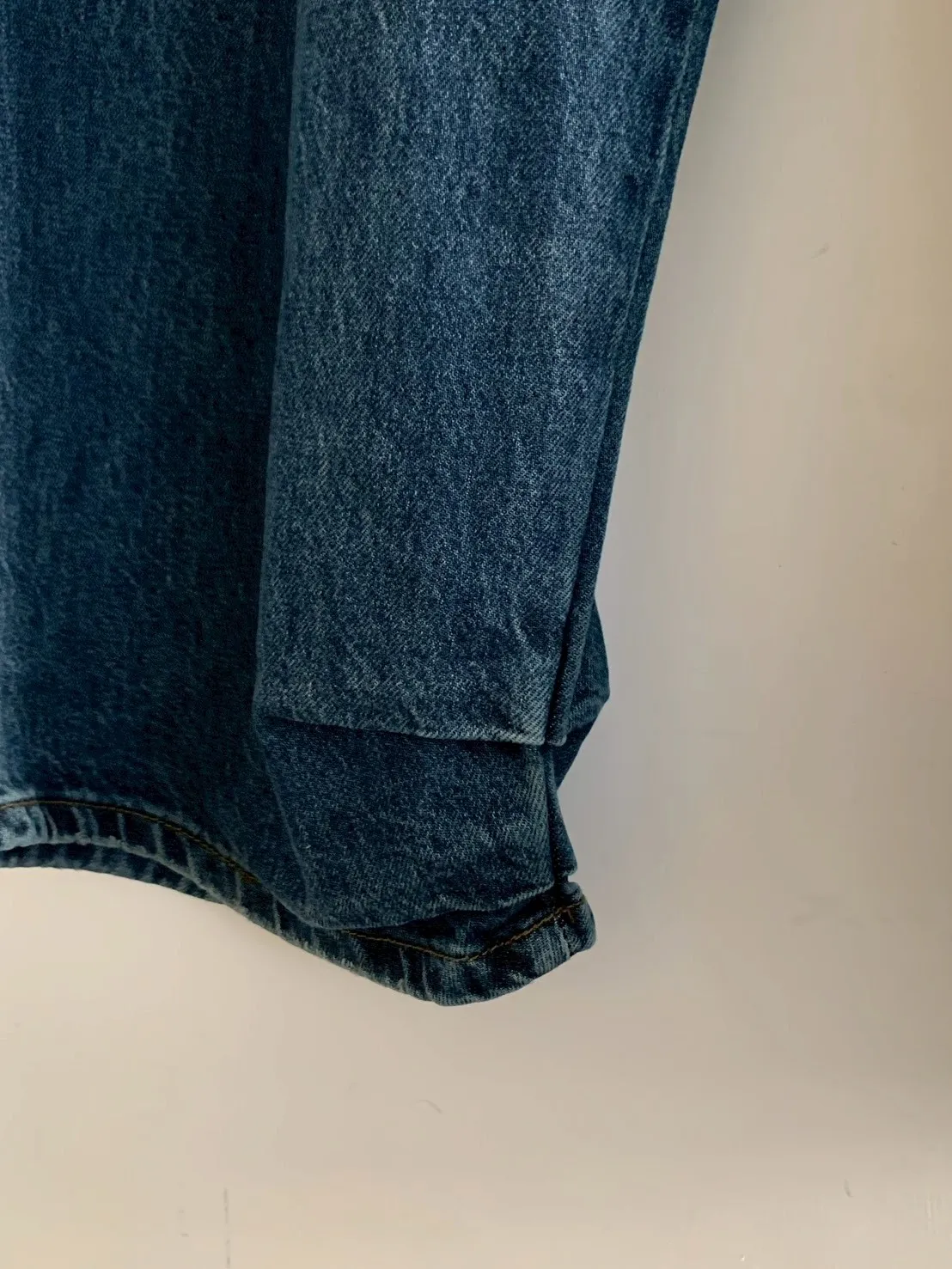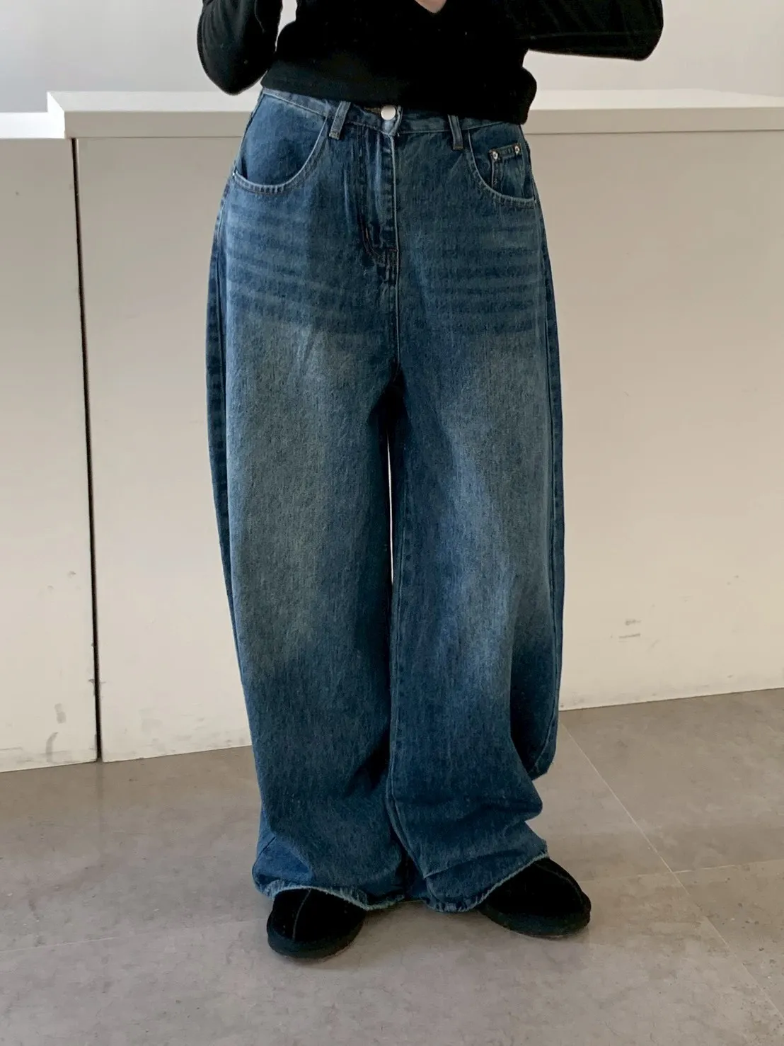 下褲管雙層抓皺牛仔寬褲