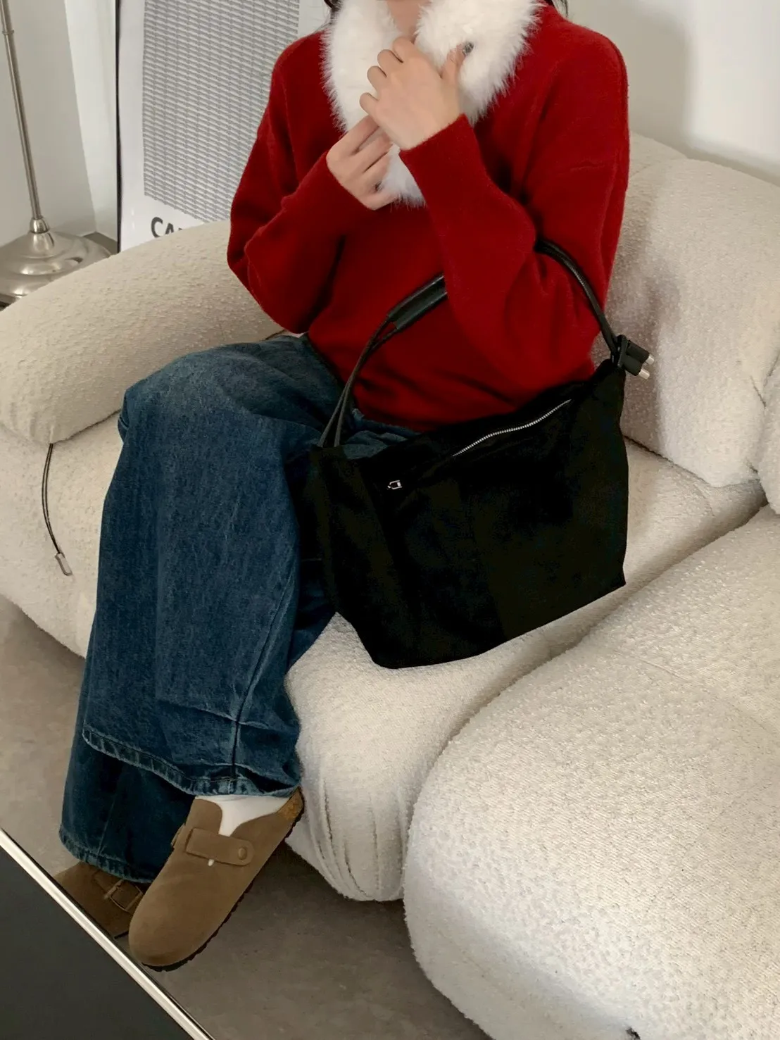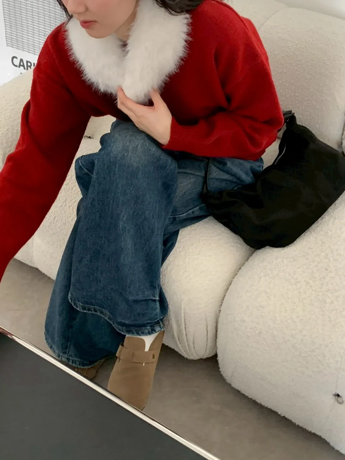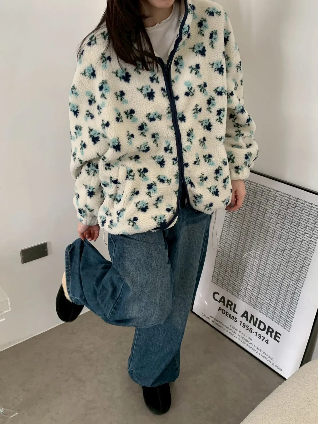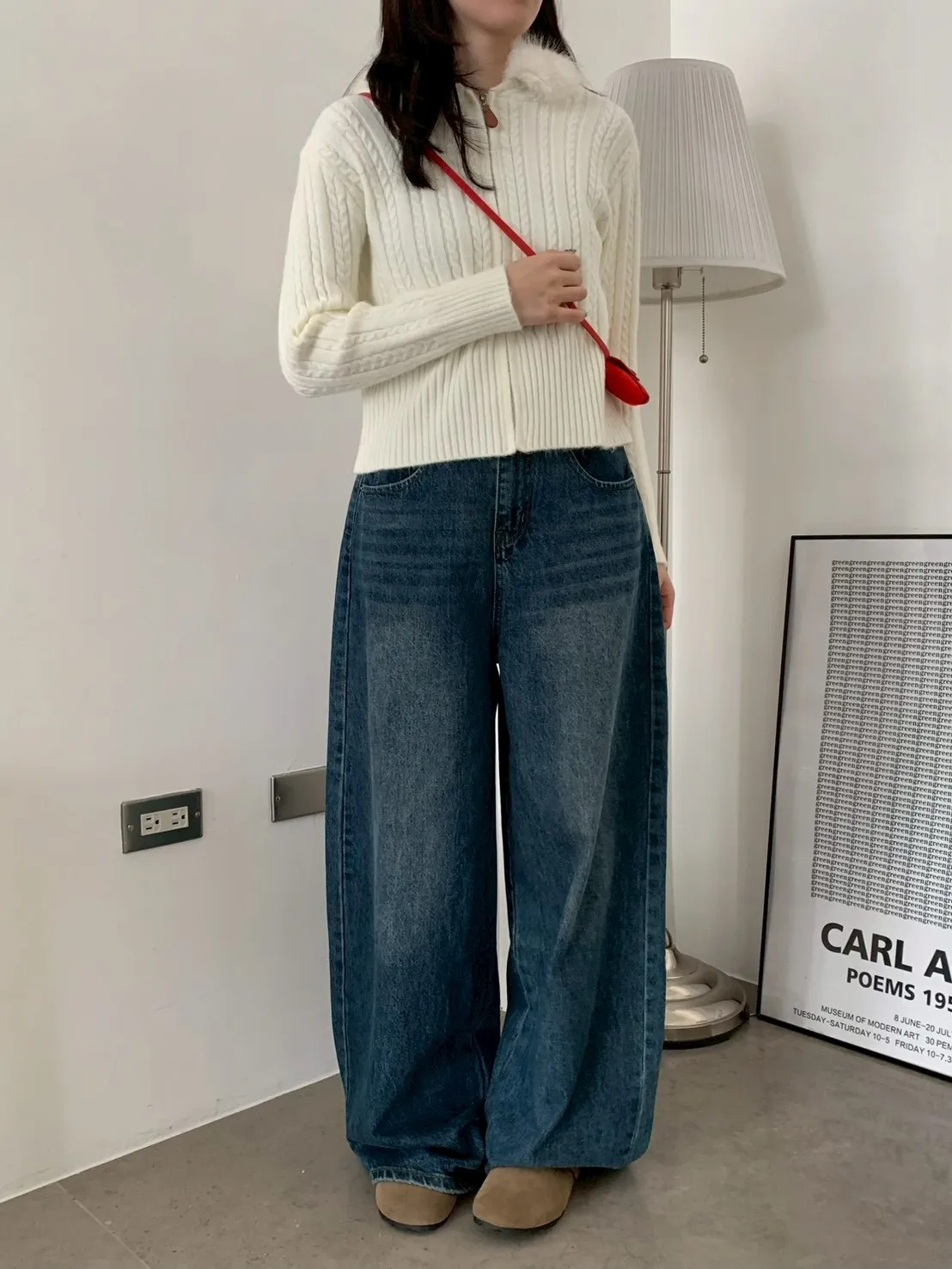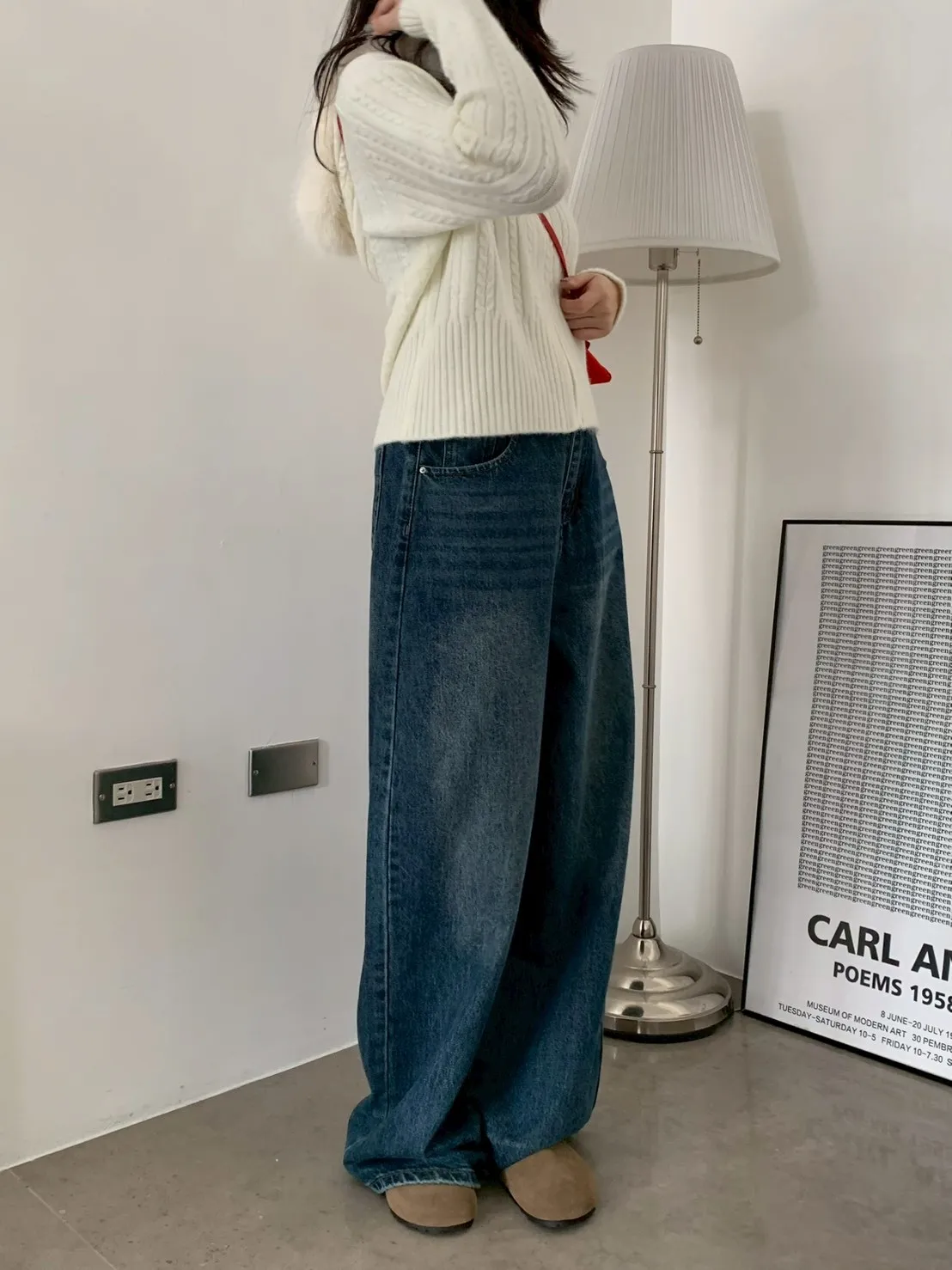 下褲管雙層抓皺牛仔寬褲