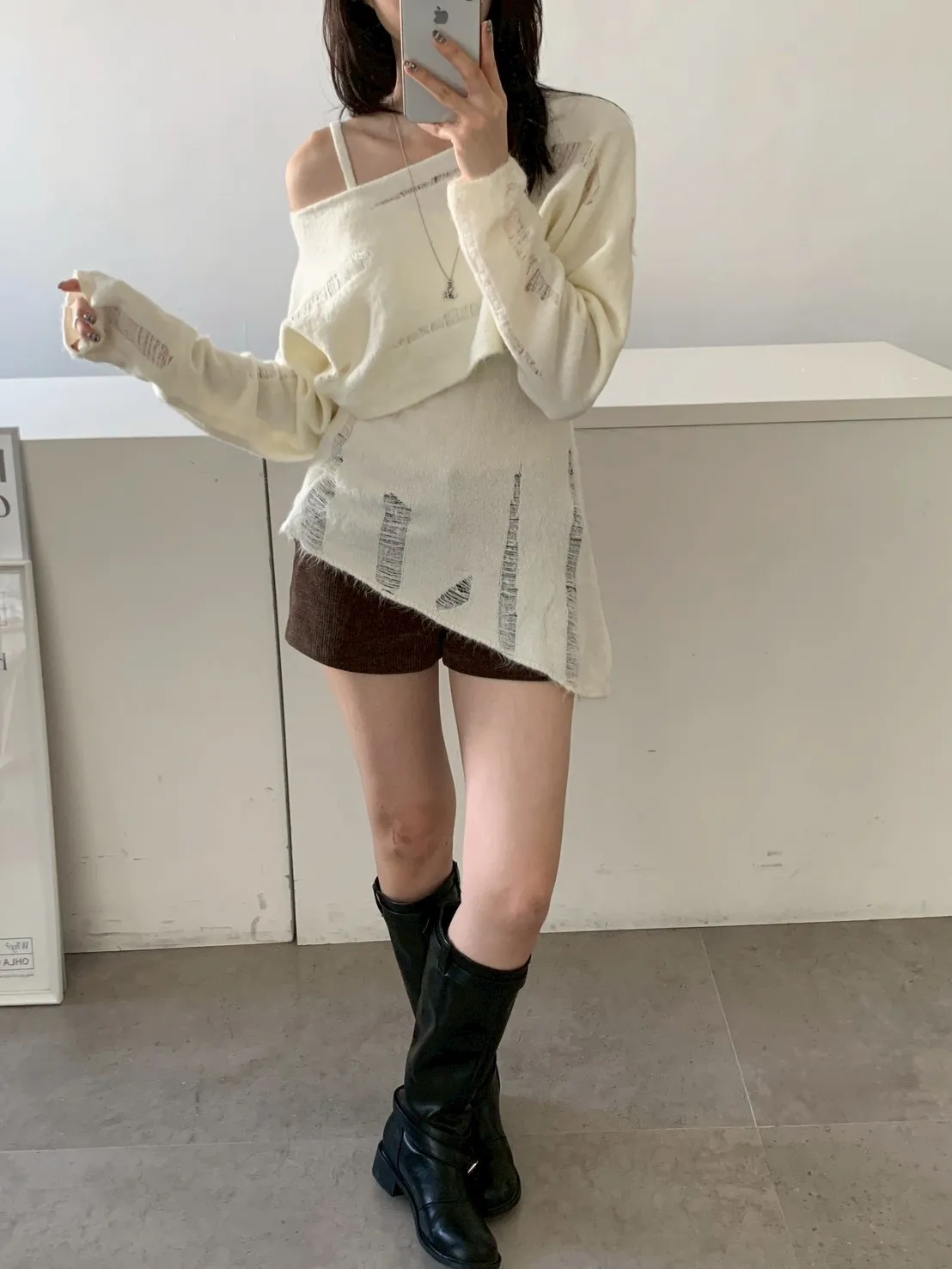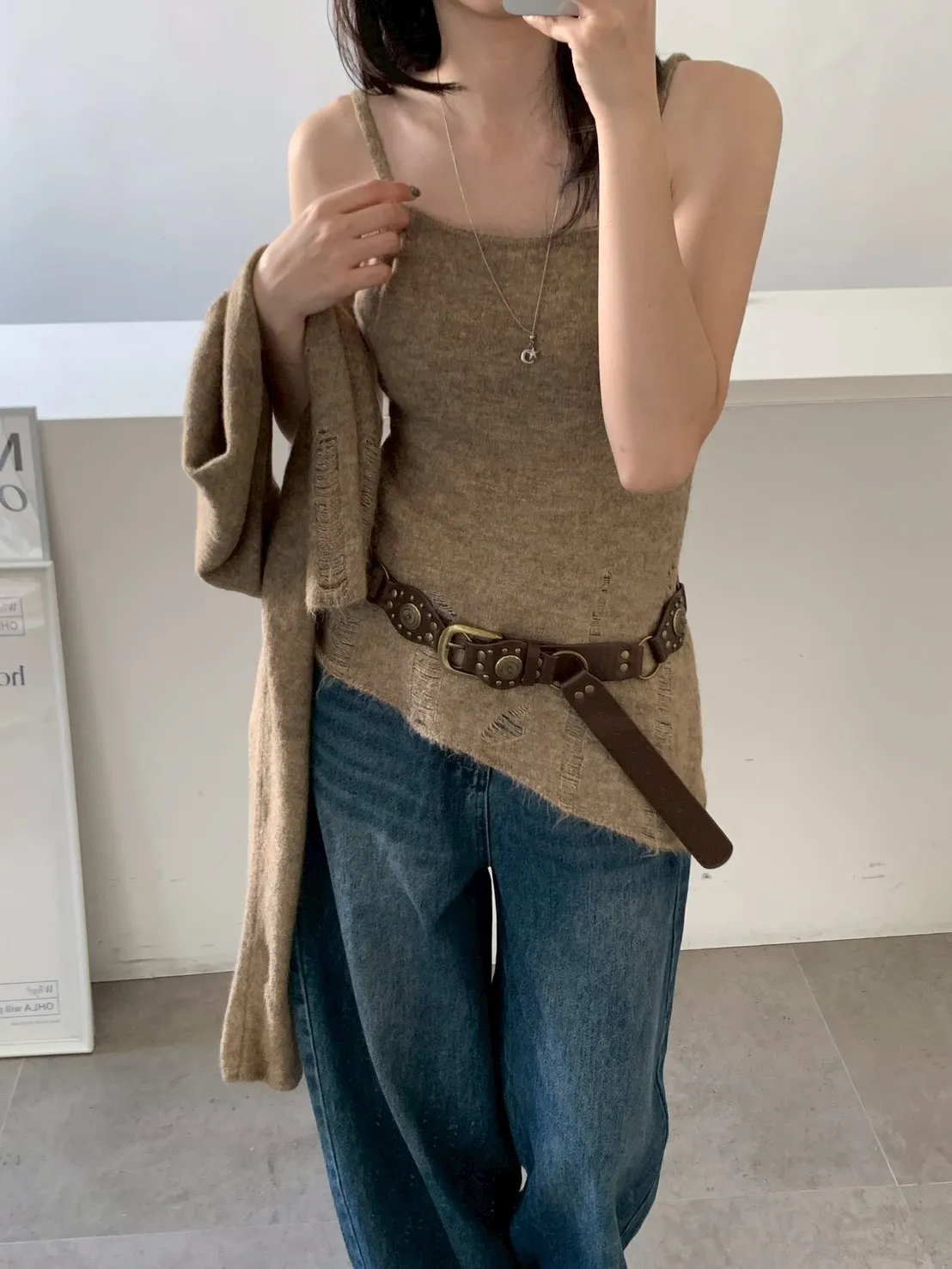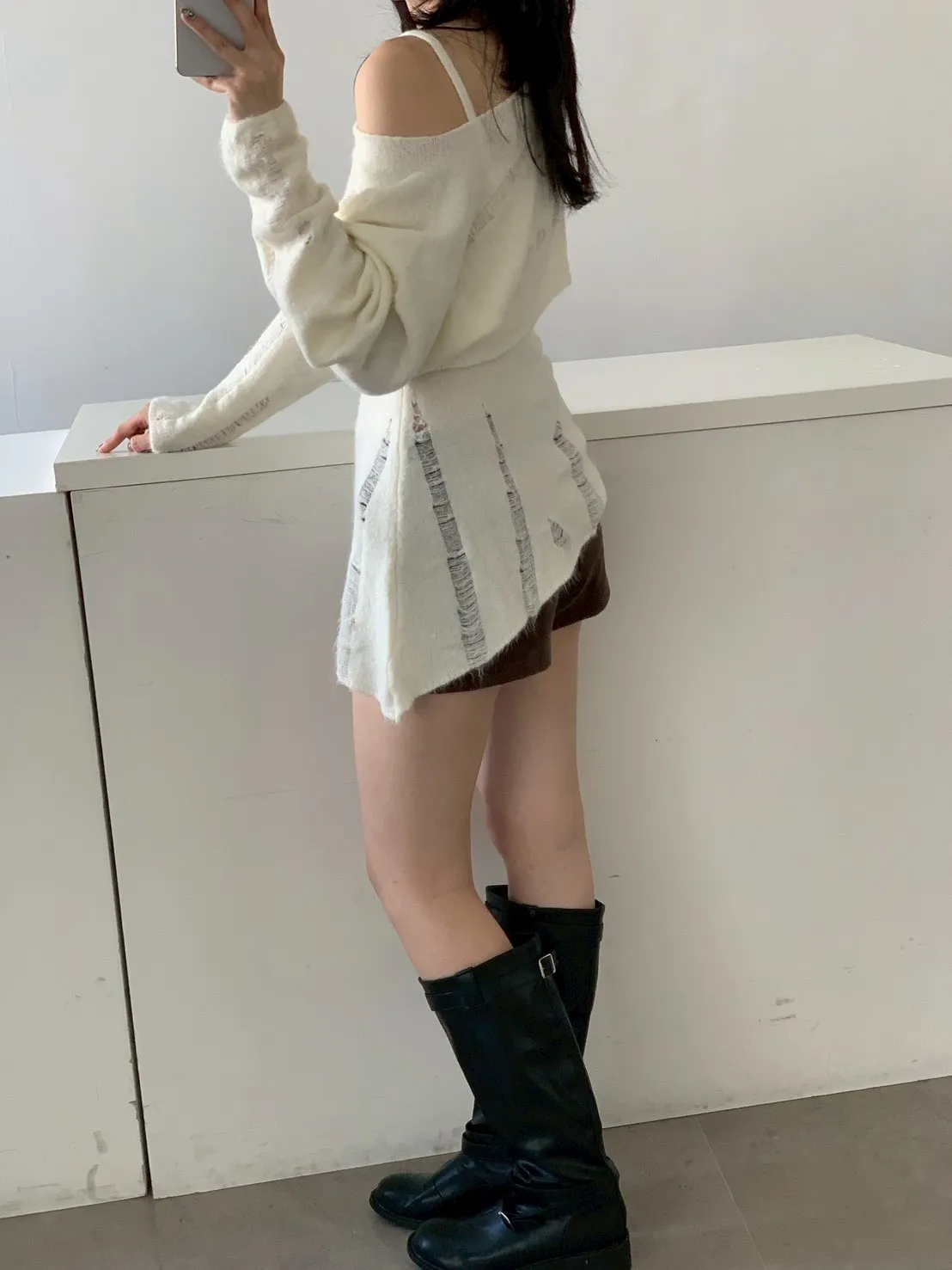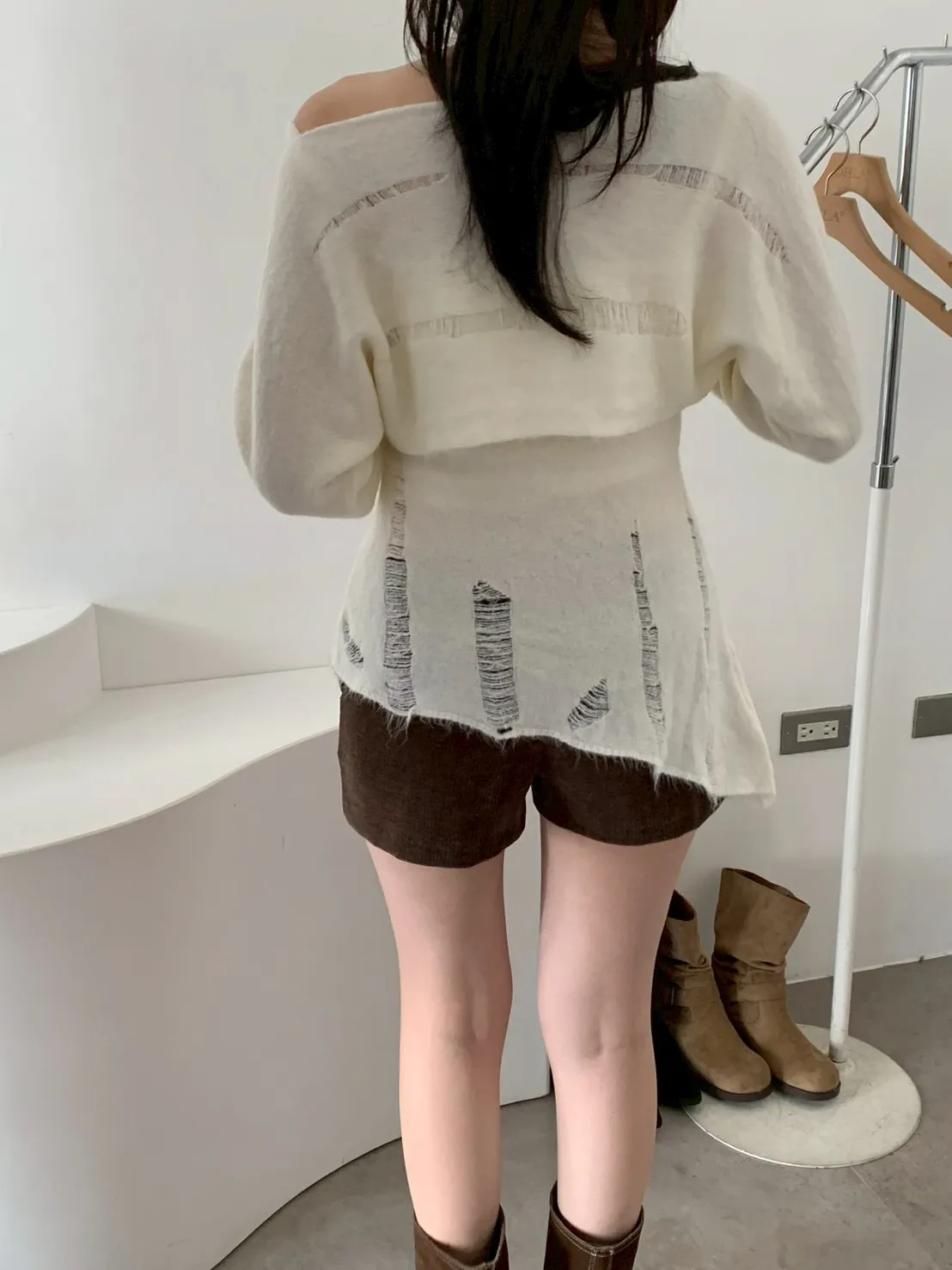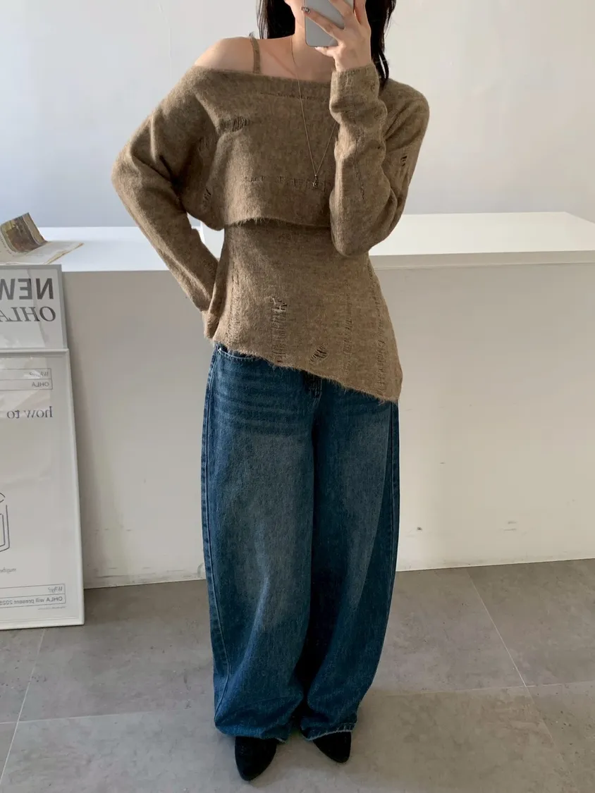 SET 鬚破短版針織+斜下擺背心