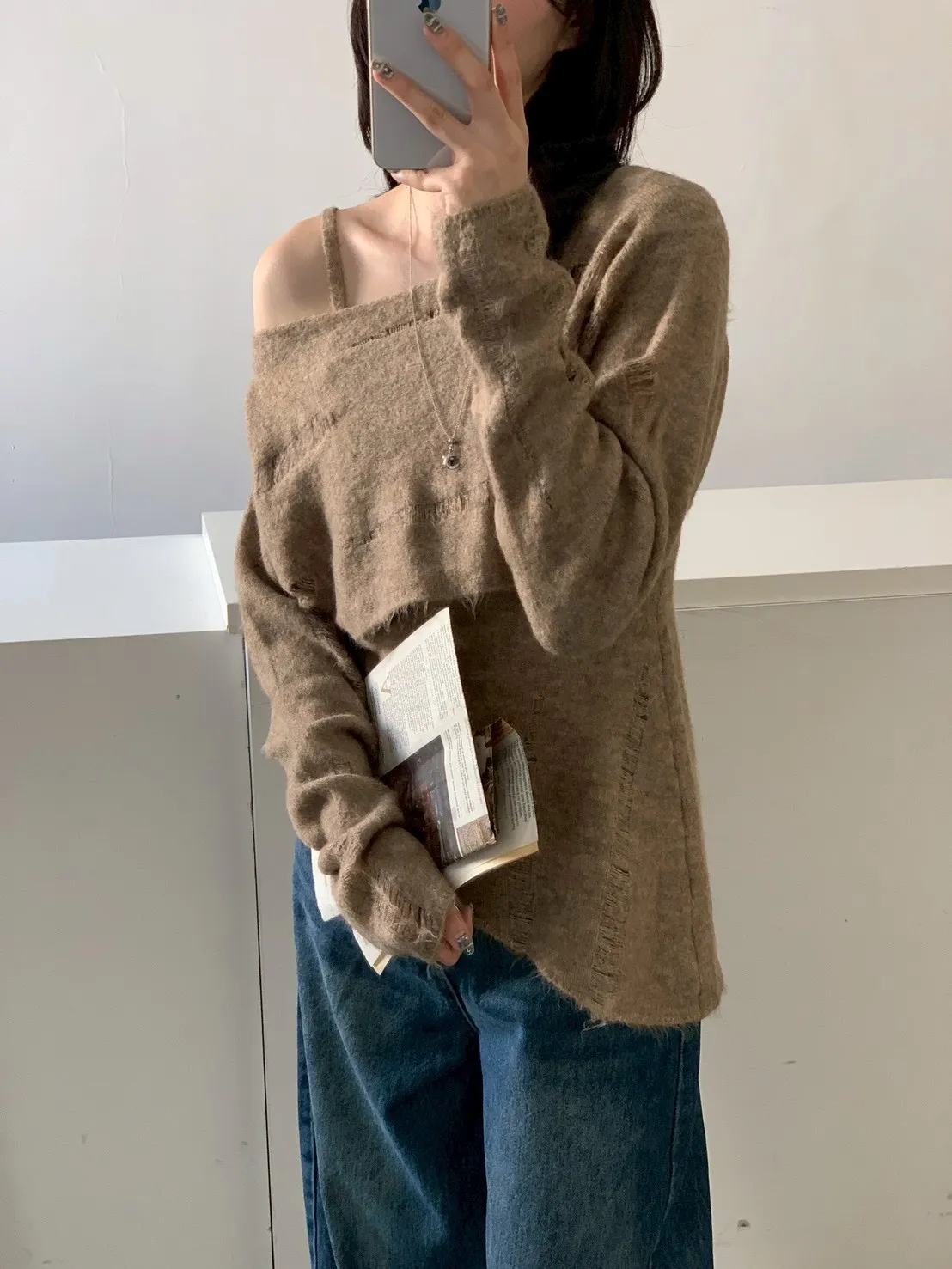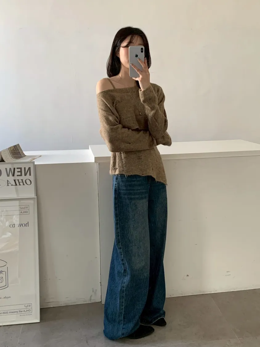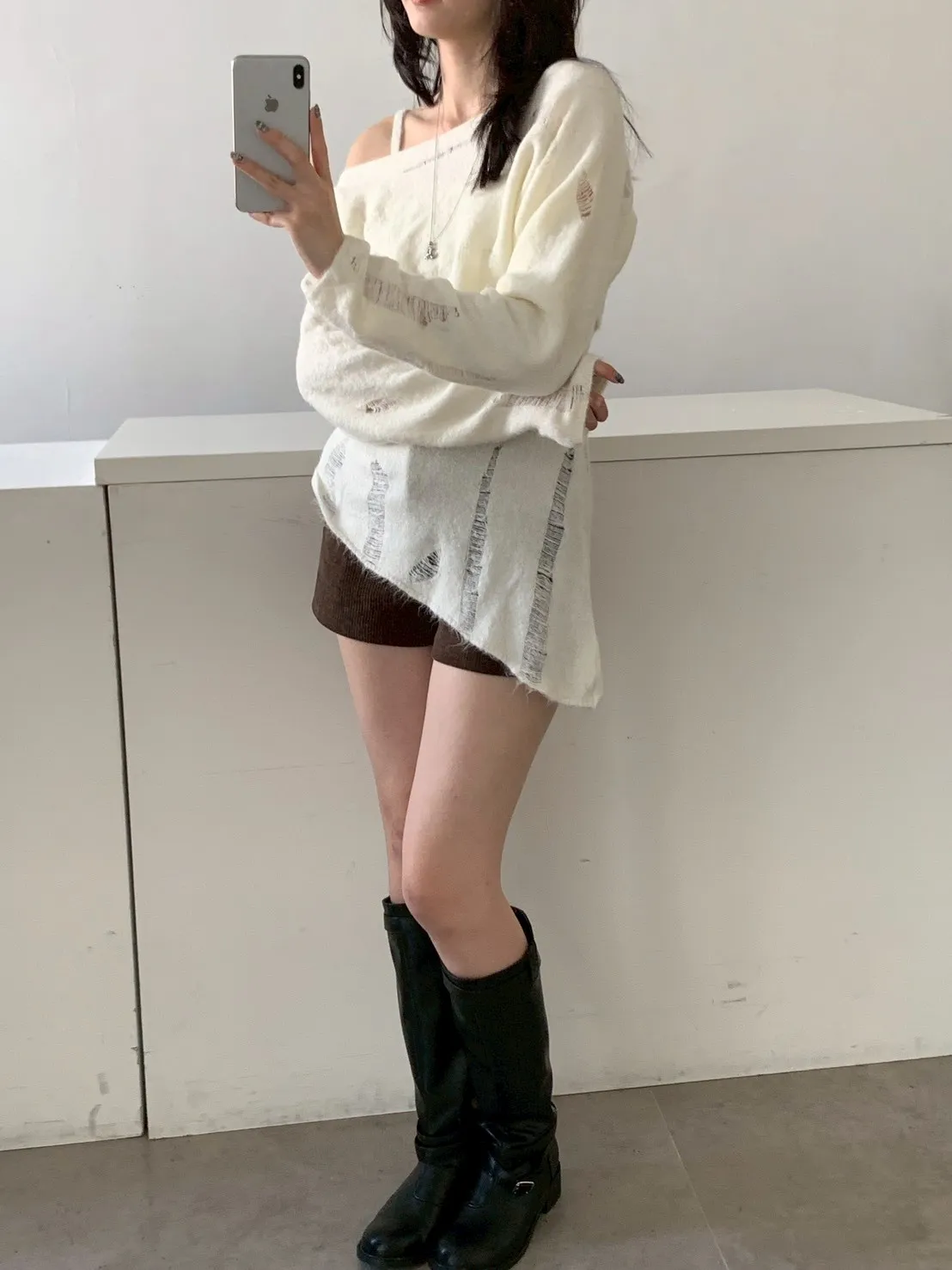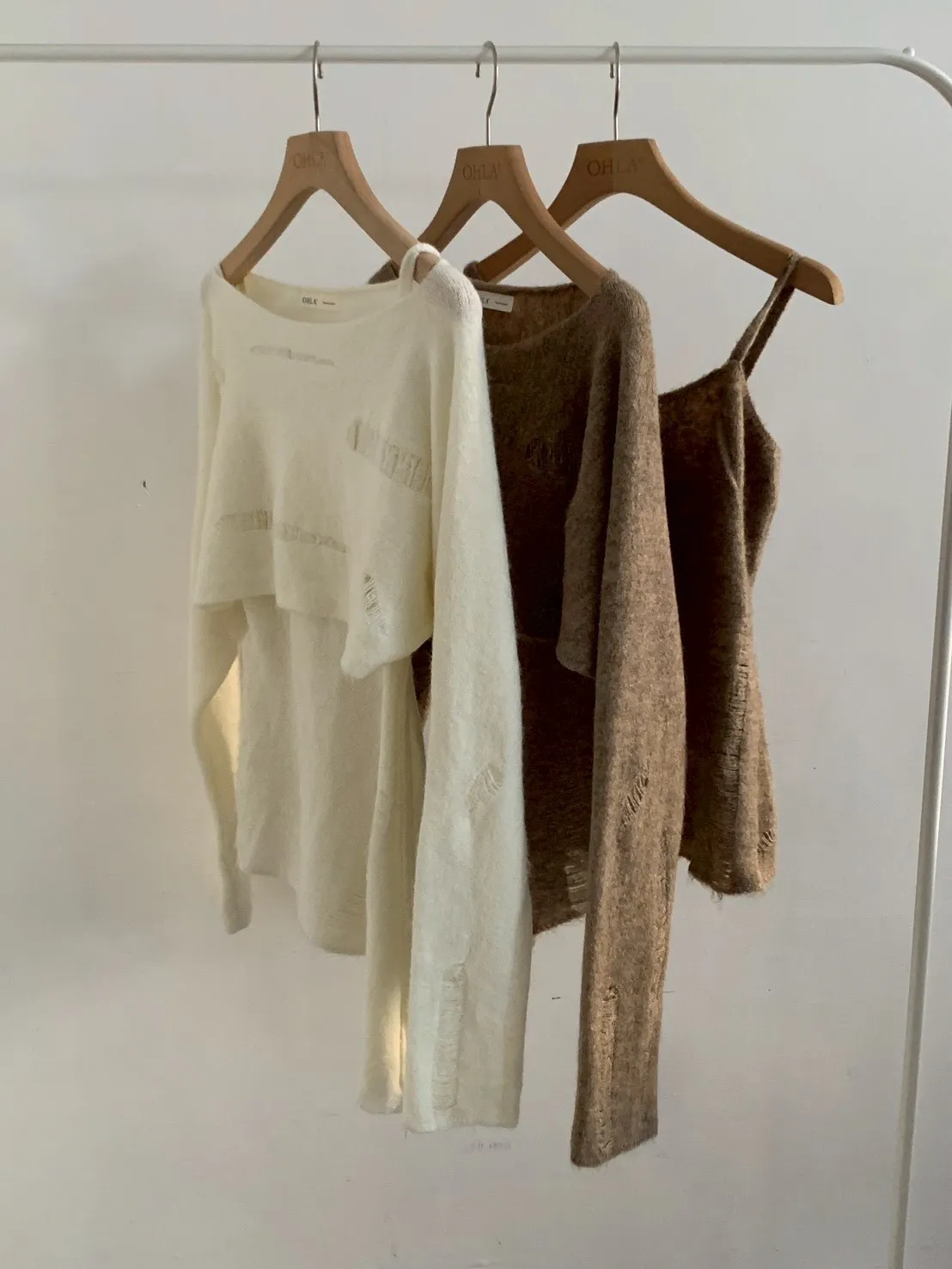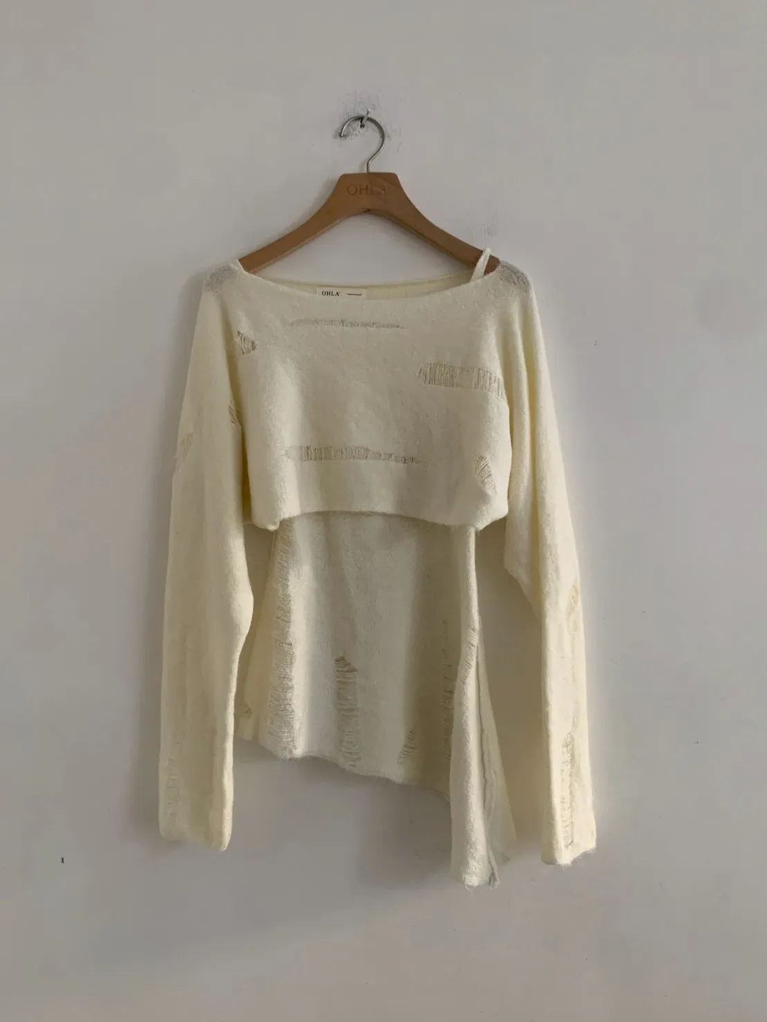SET 鬚破短版針織+斜下擺背心