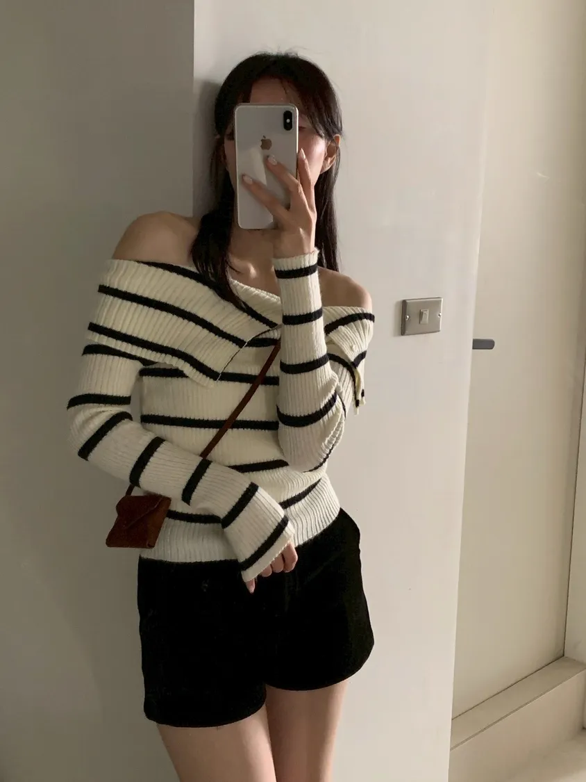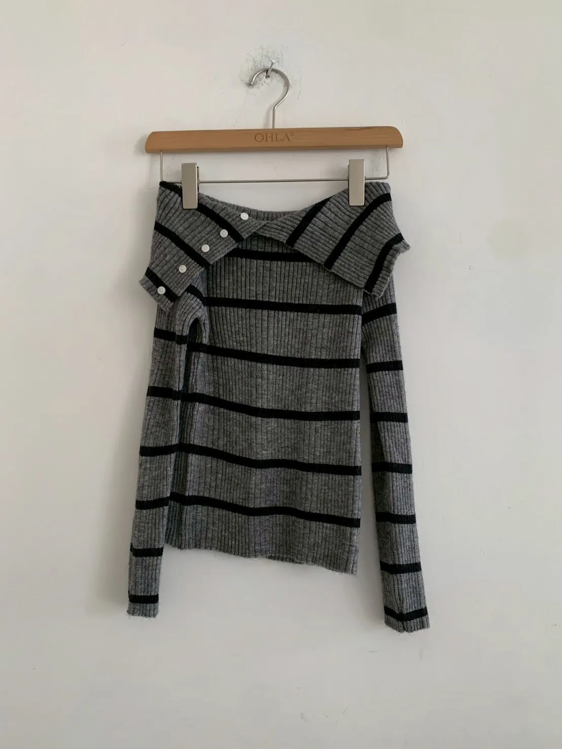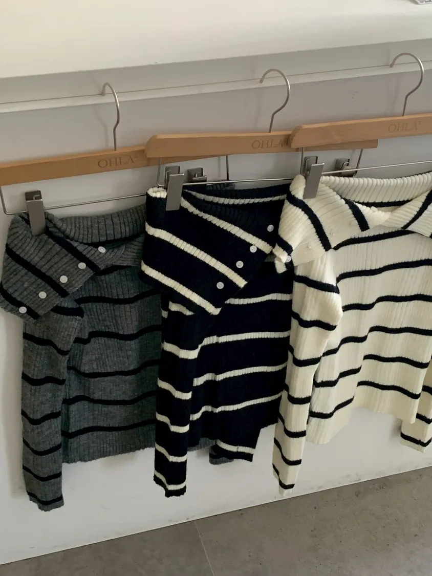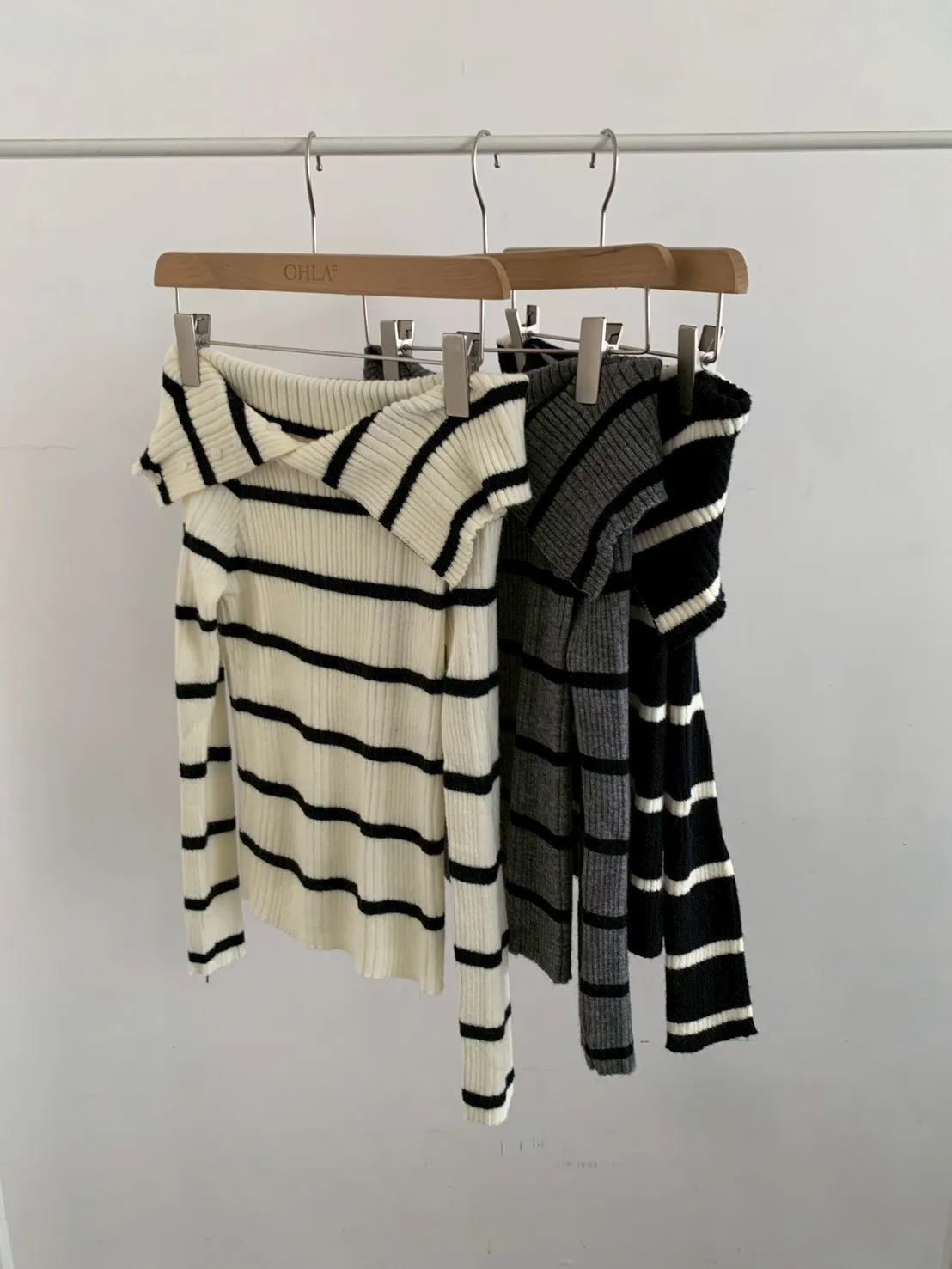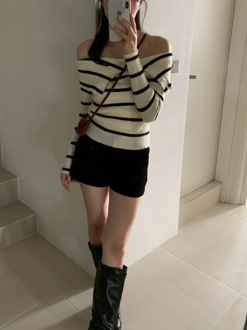 跳色橫條平口針織上衣