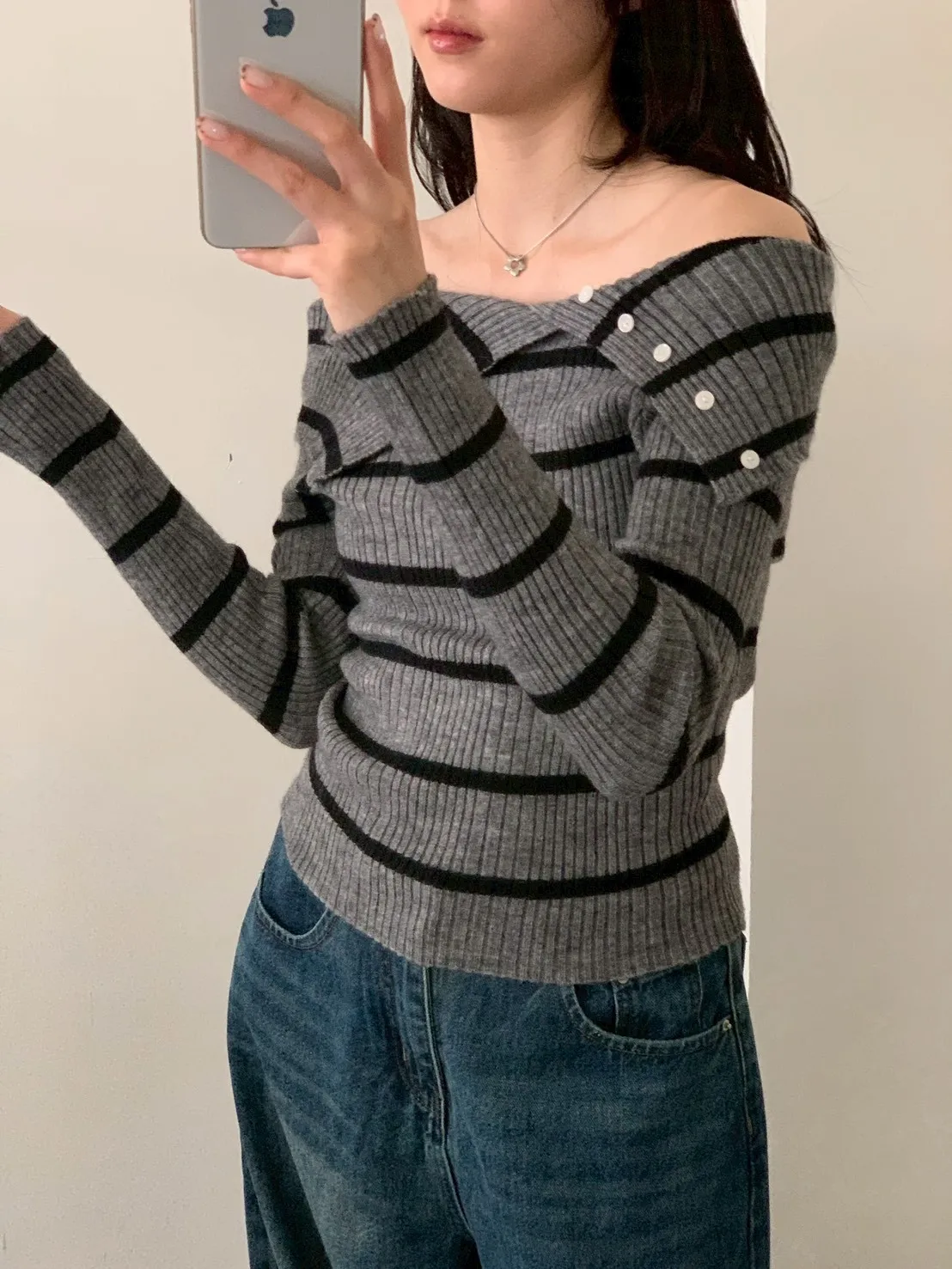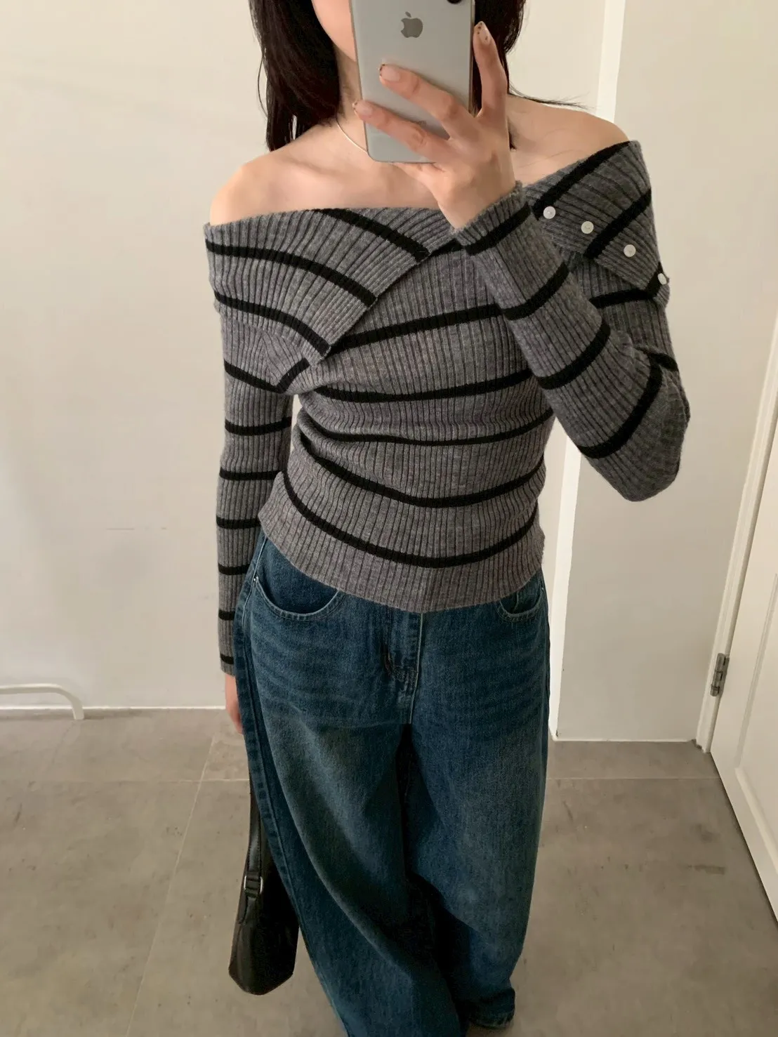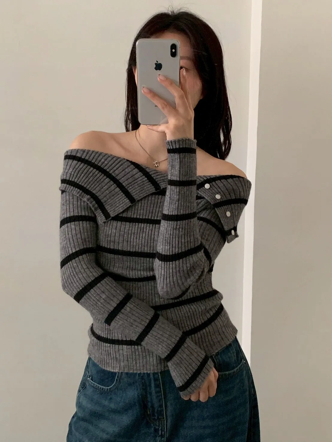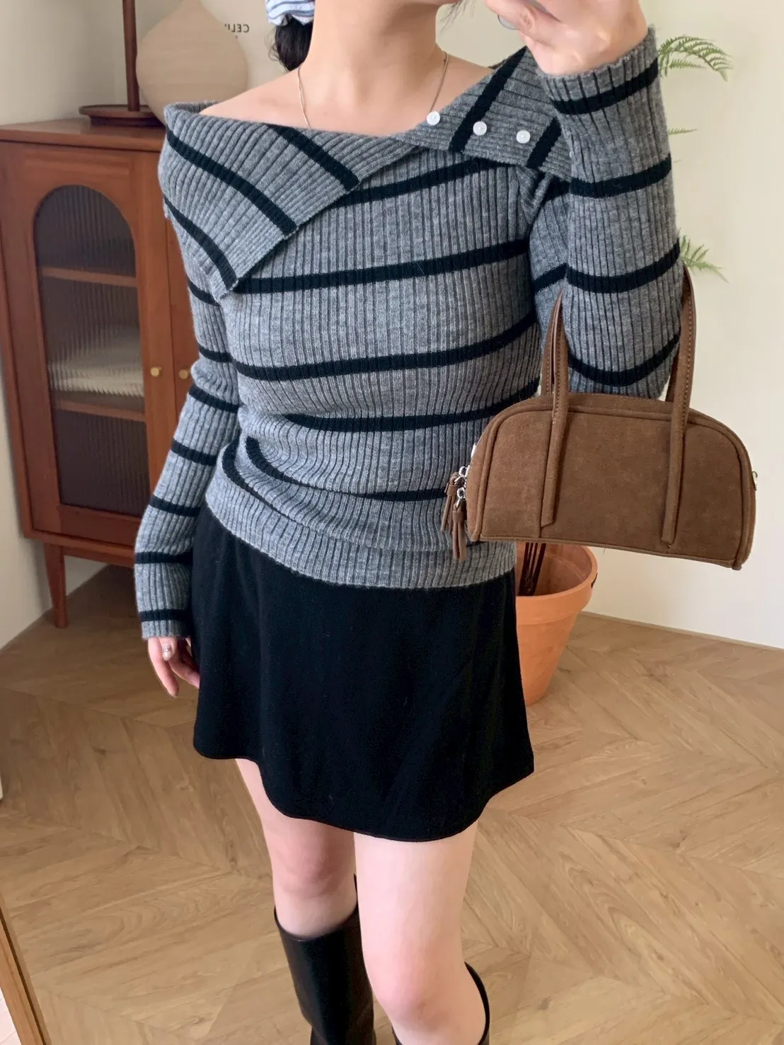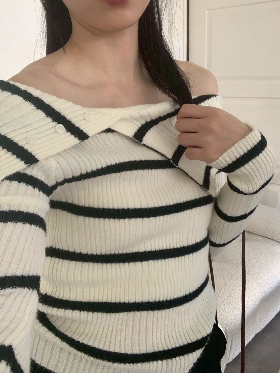 跳色橫條平口針織上衣