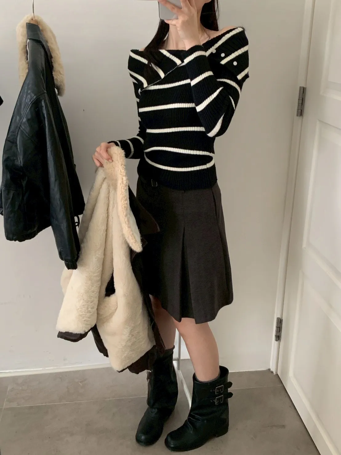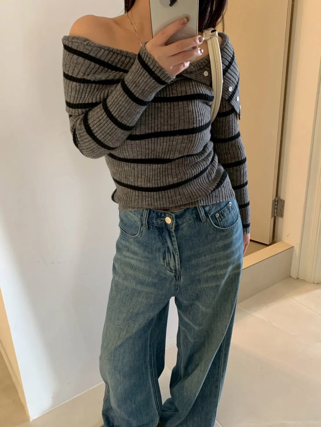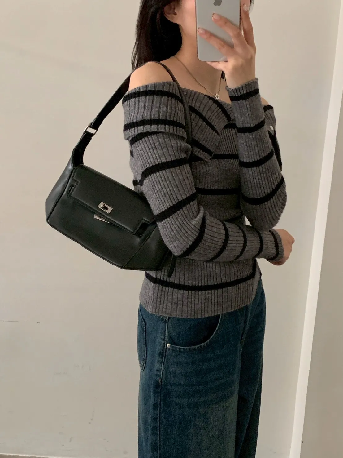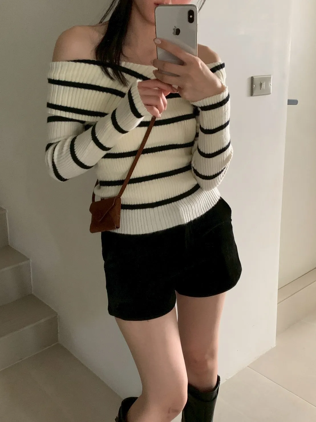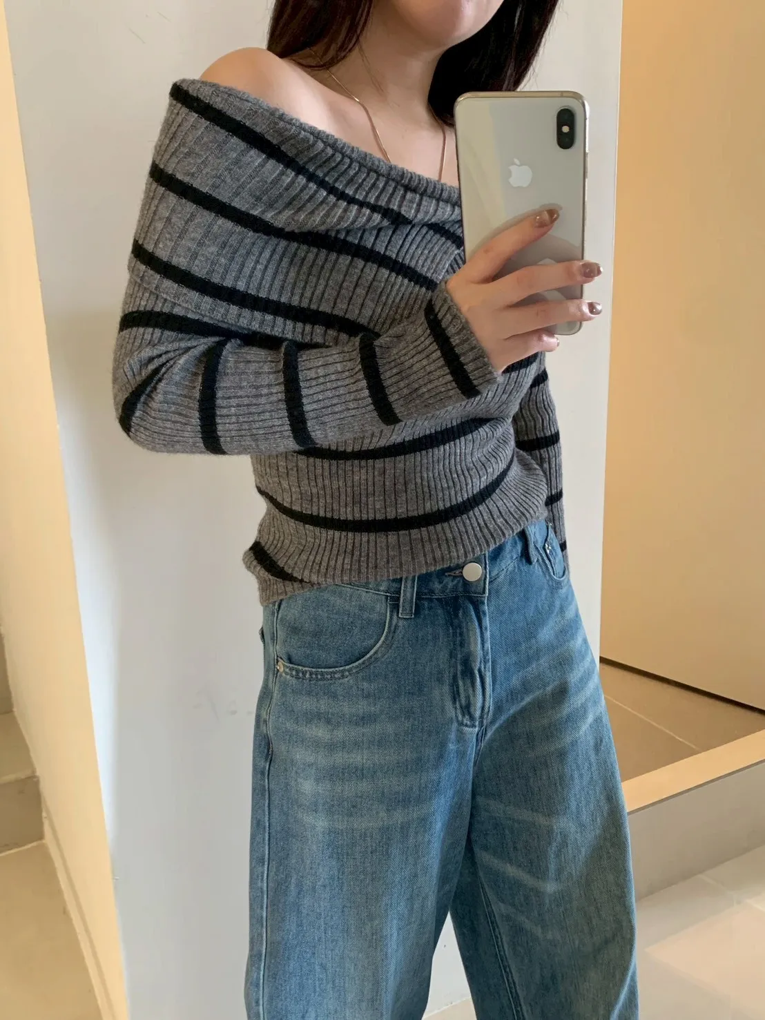跳色橫條平口針織上衣