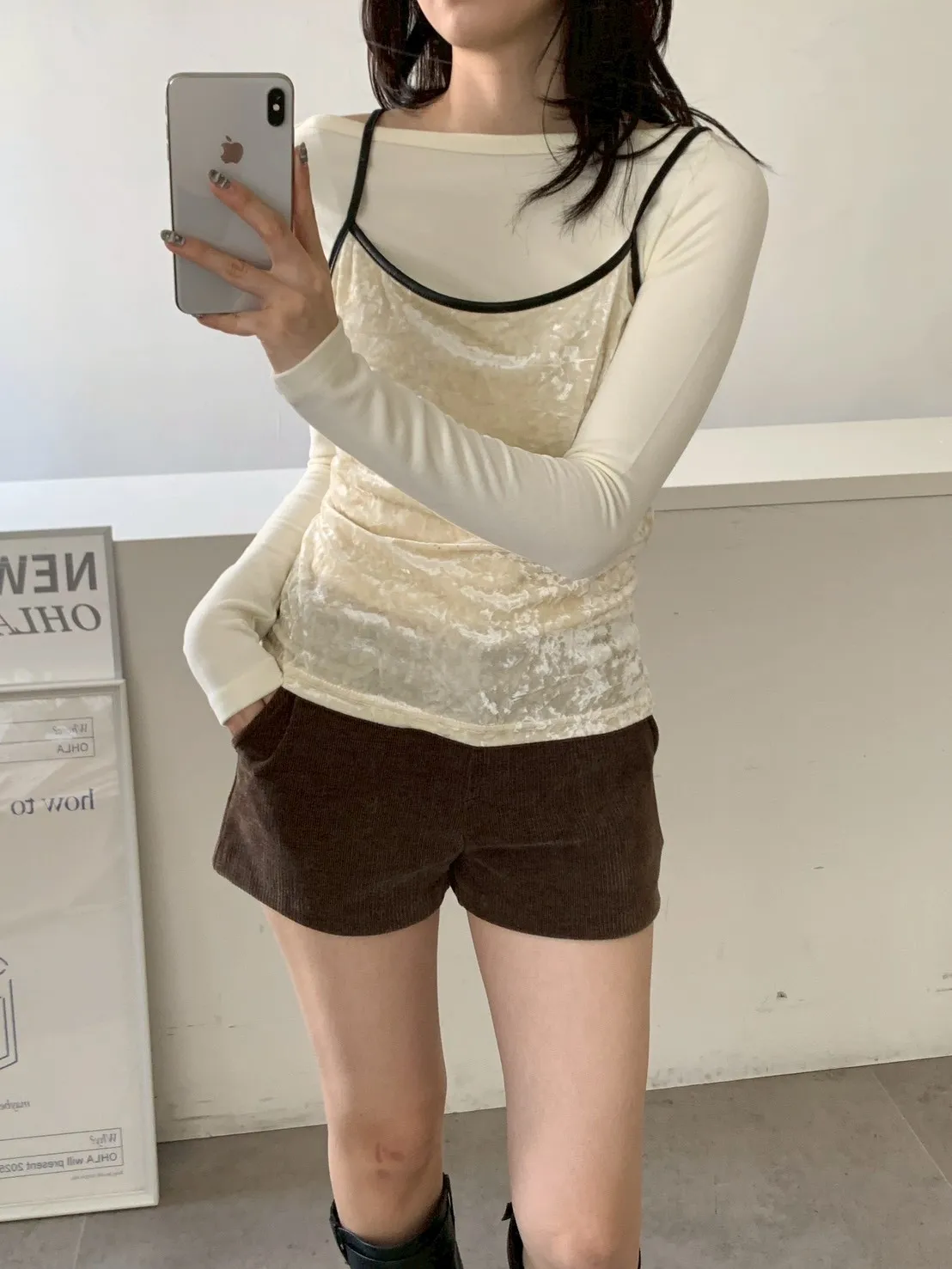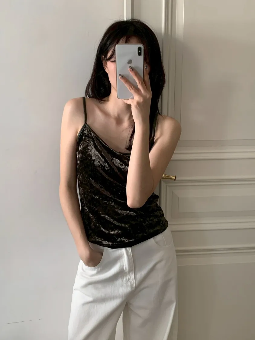 皮肩帶 絲絨吊帶背心