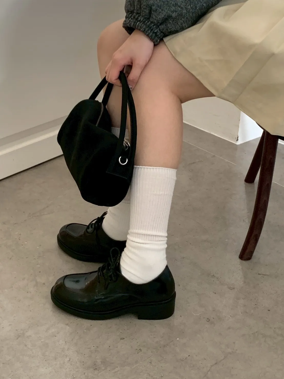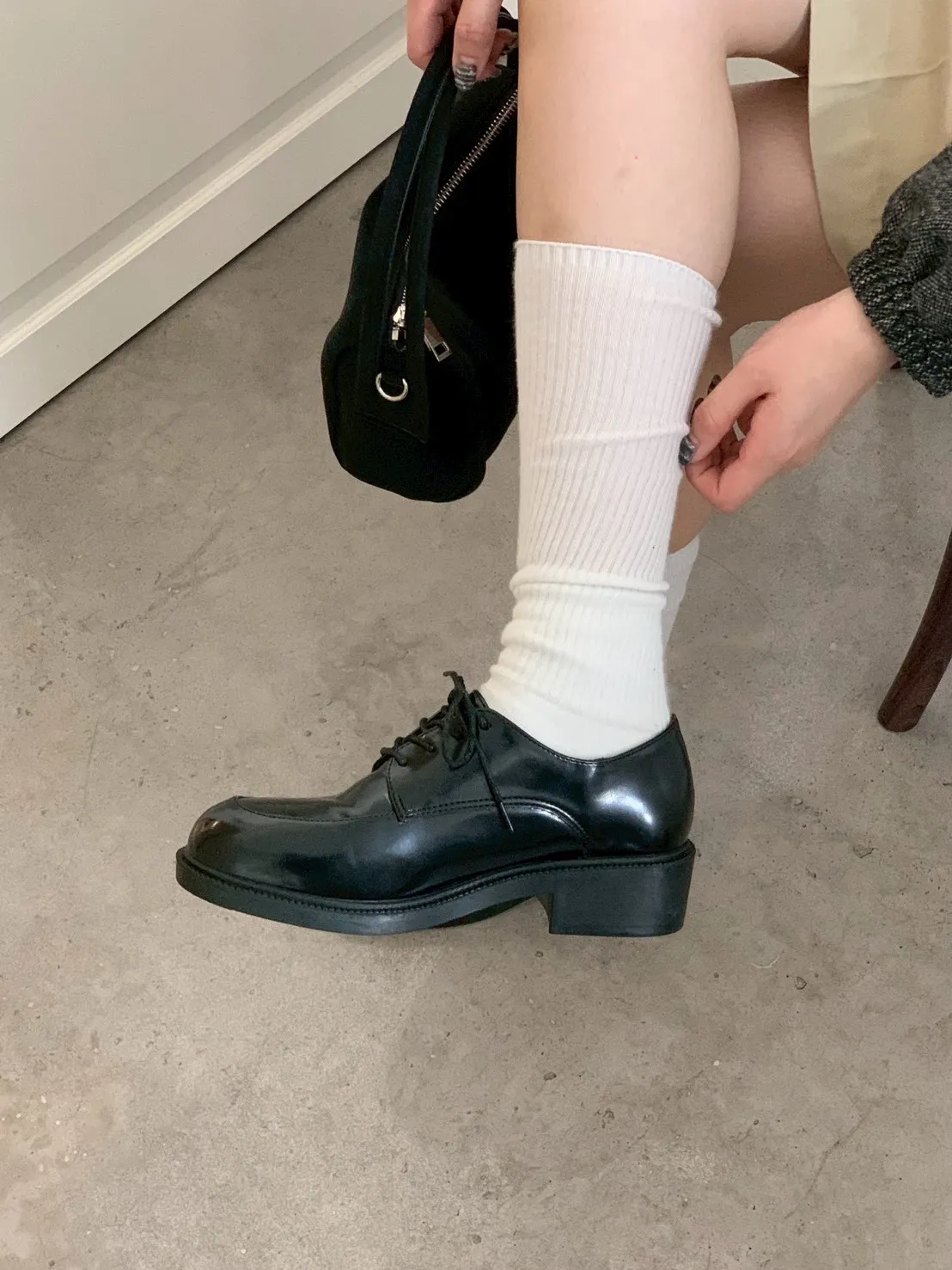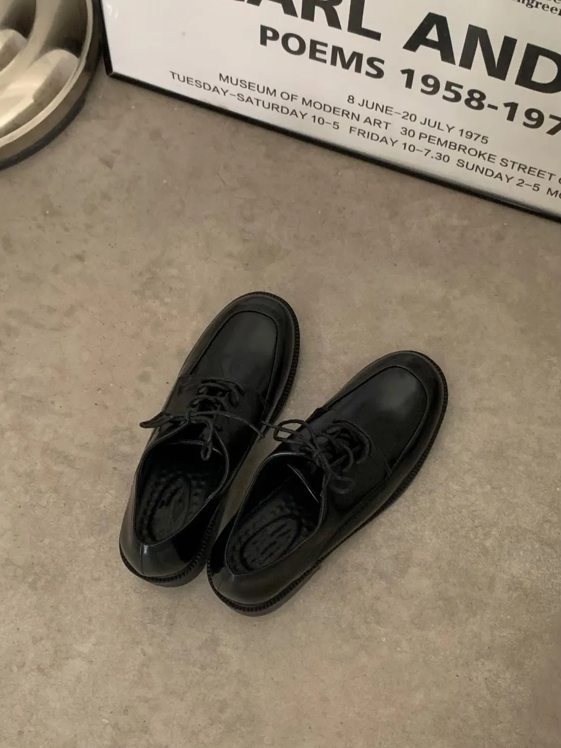 立體車線亮皮綁帶低跟皮鞋SY0538-1