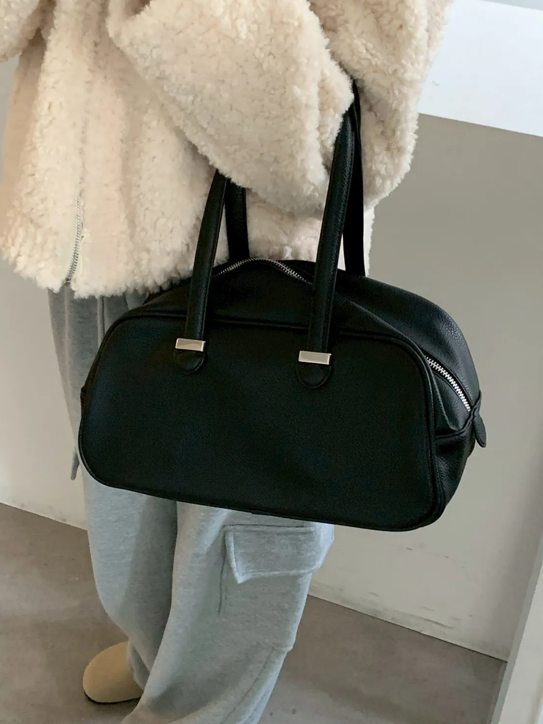 質感在線荔枝紋皮保齡球包