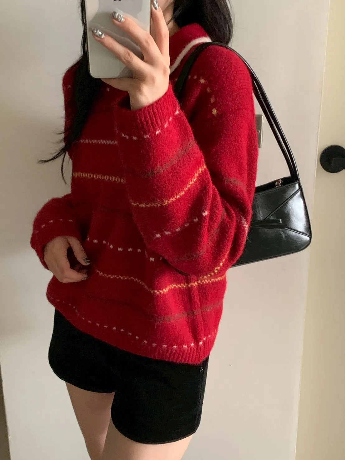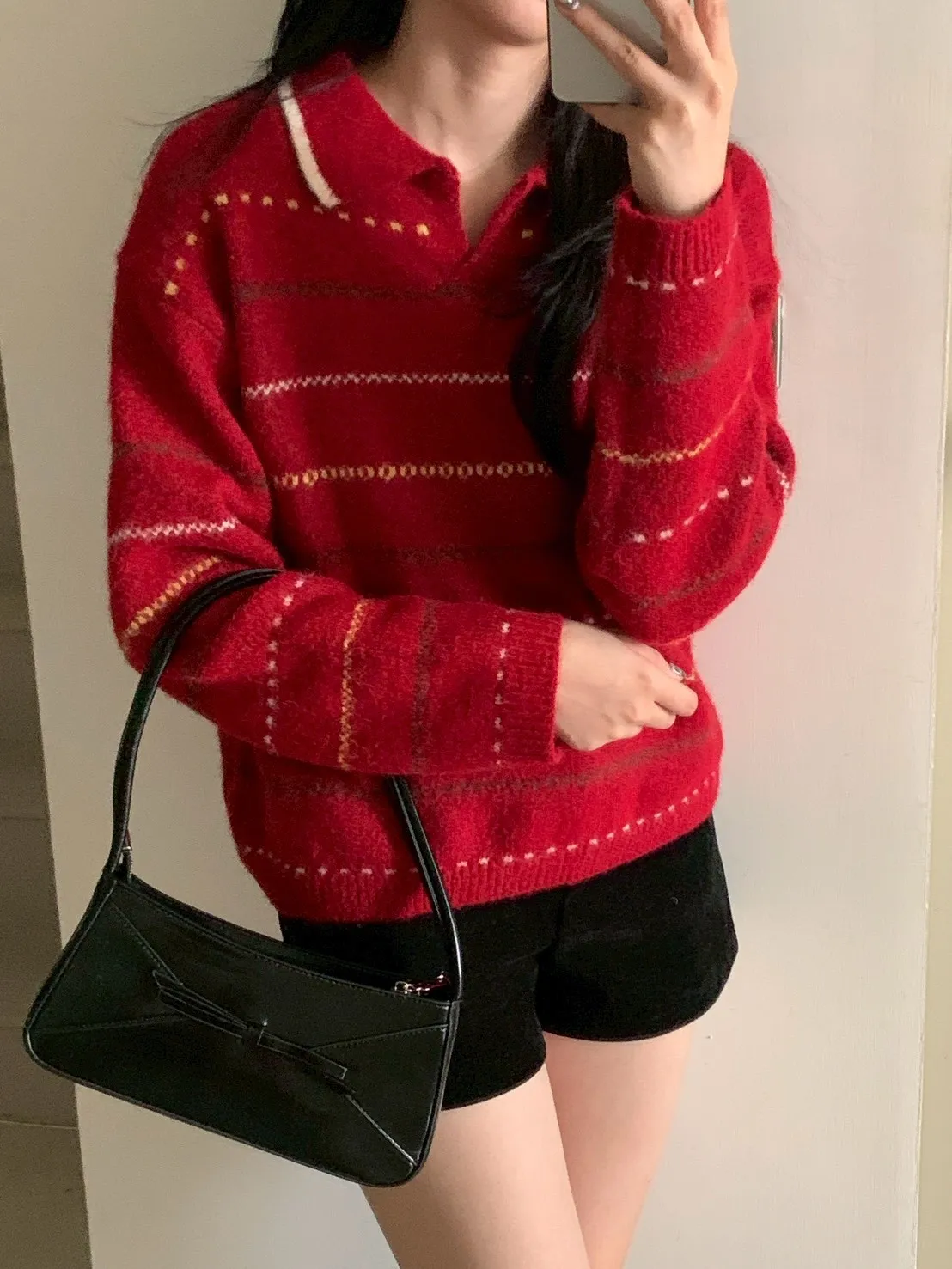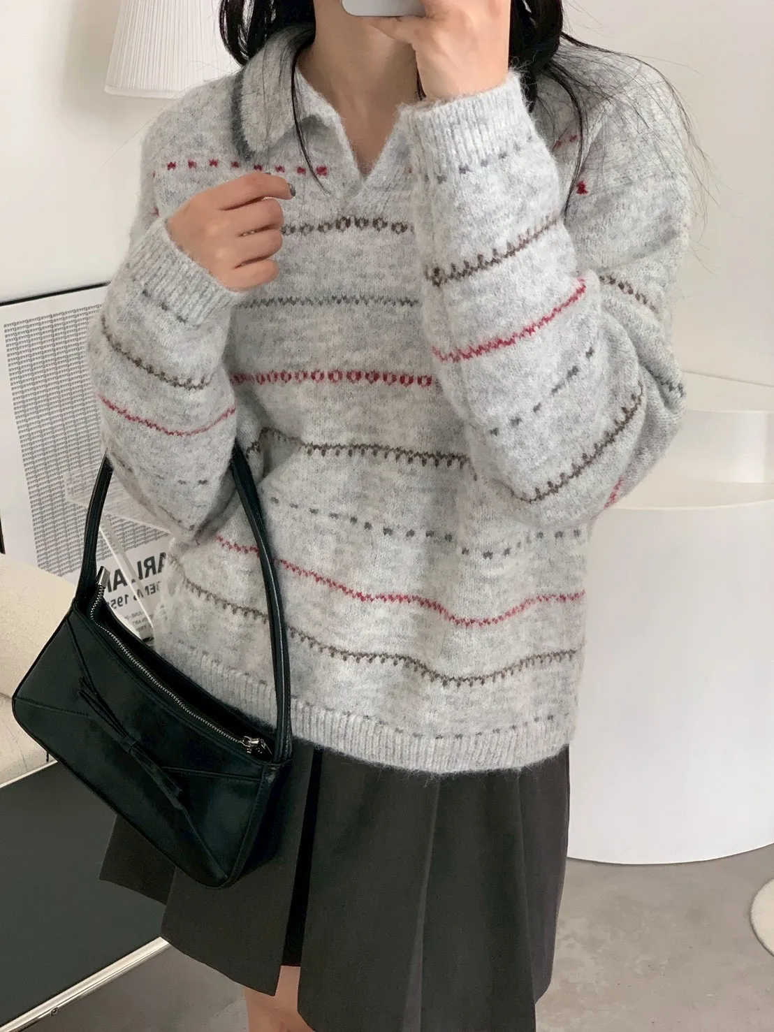 小V翻領圖騰橫條針織