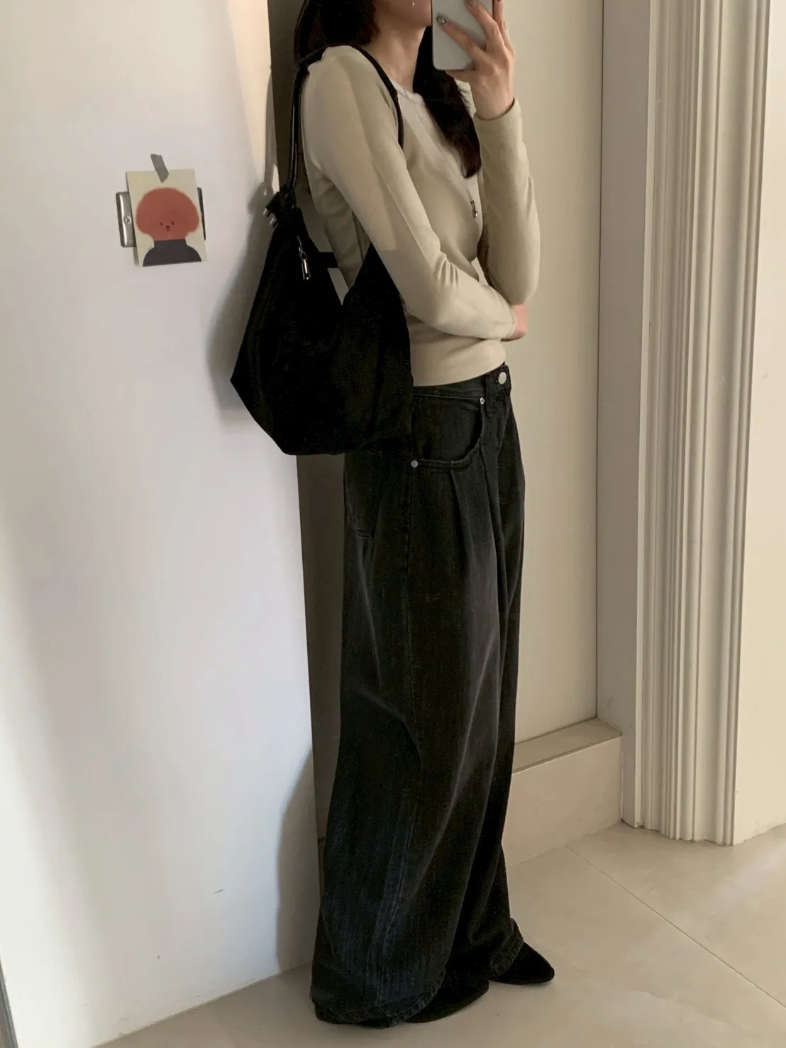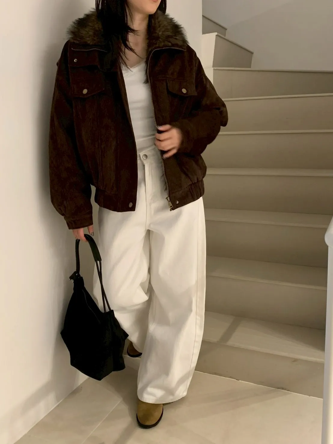 50鴨 蜜絨假翻口袋黑毛翻領外