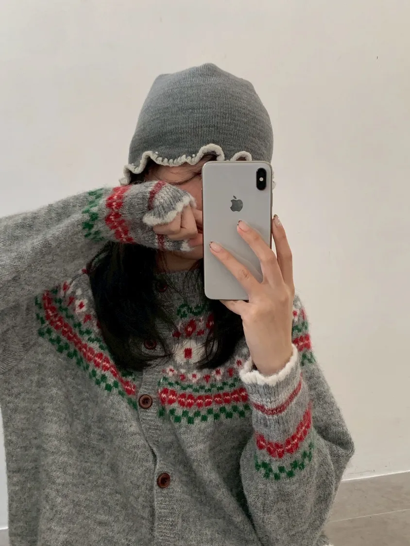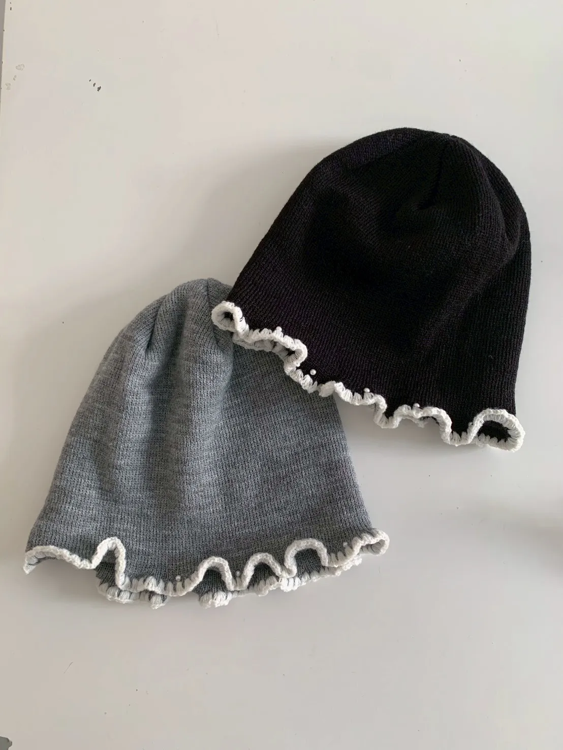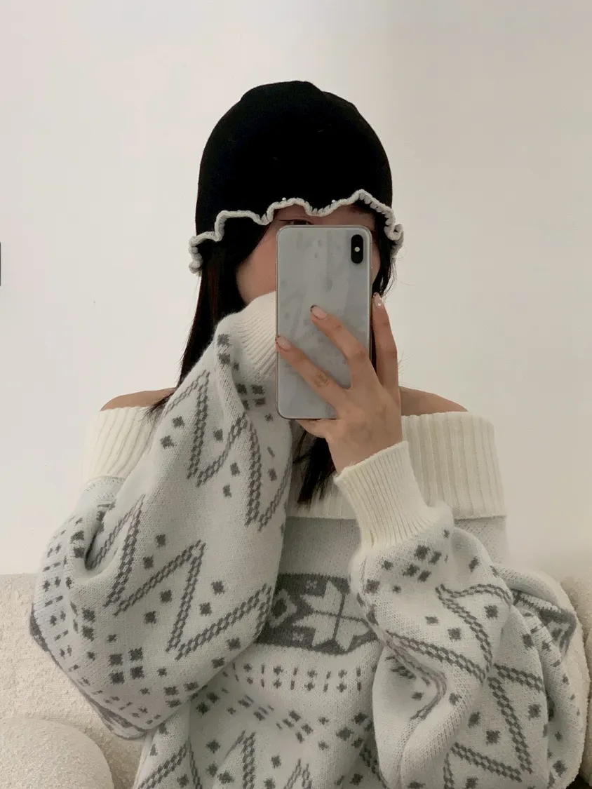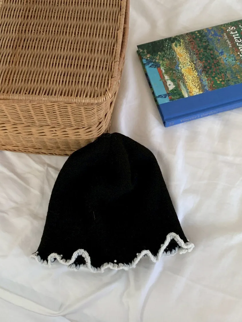 撞色捲邊珍珠毛帽