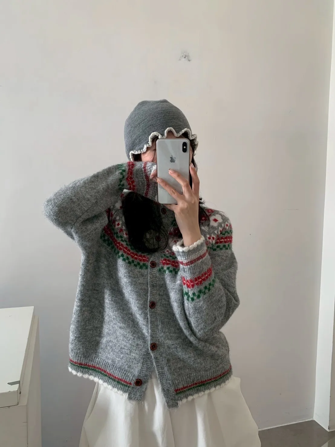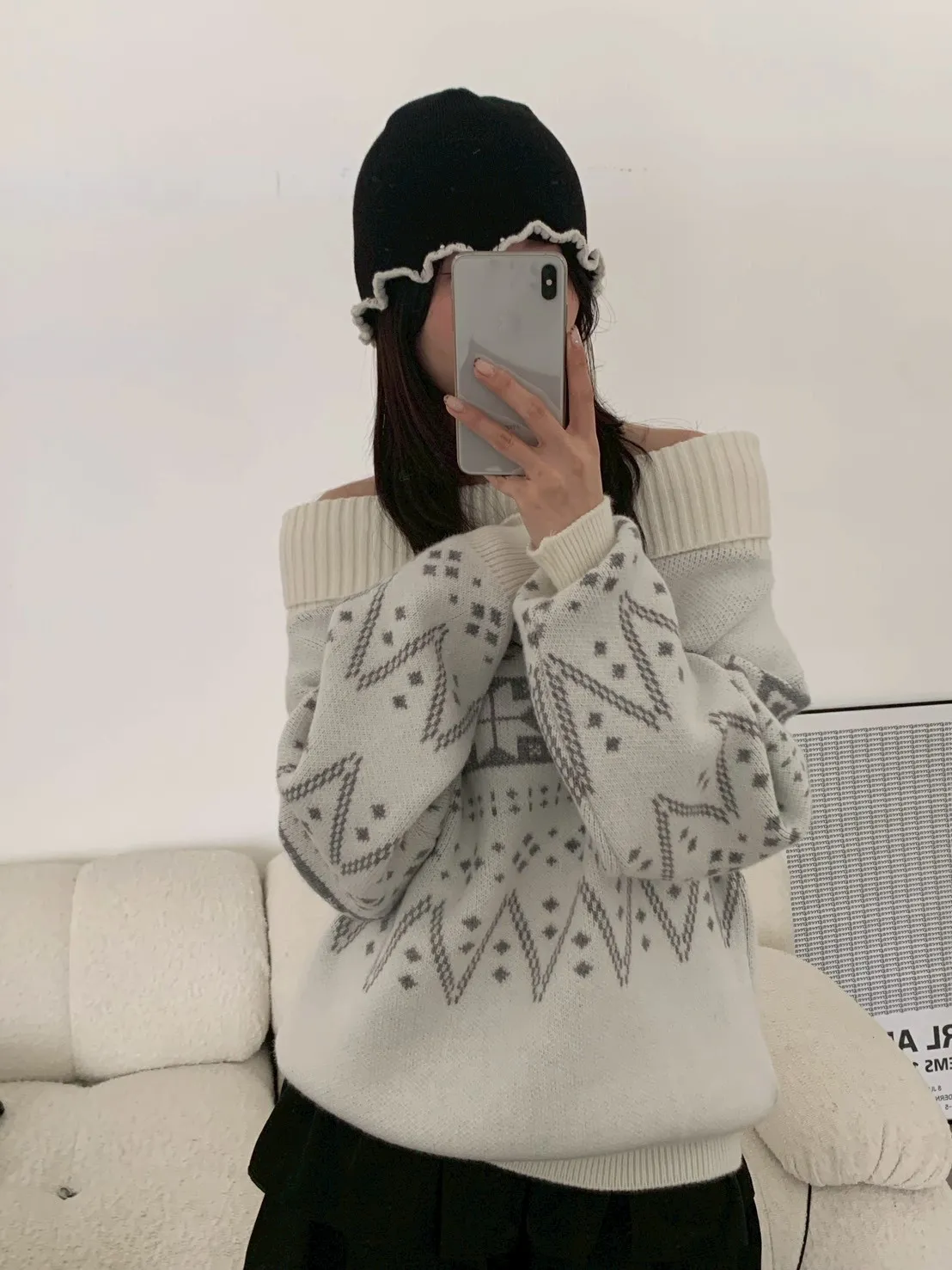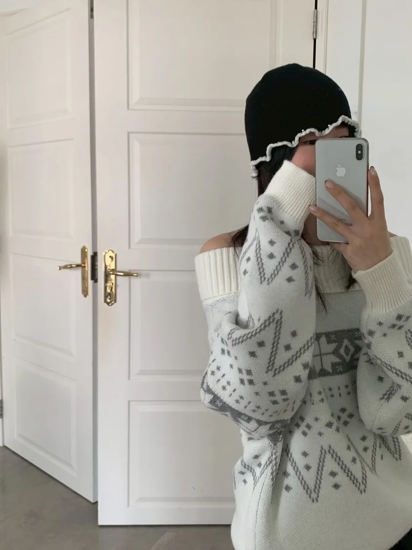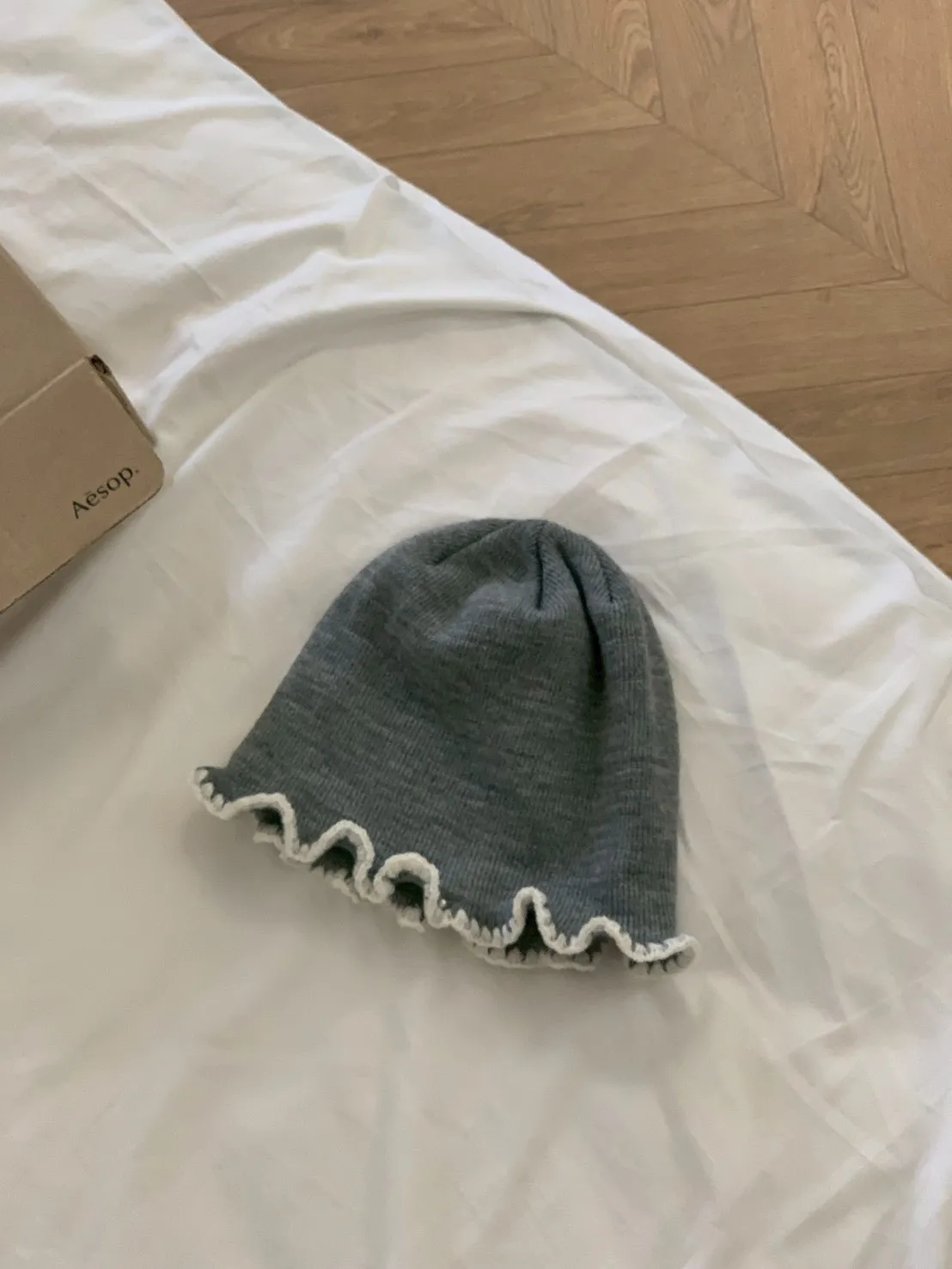 撞色捲邊珍珠毛帽
