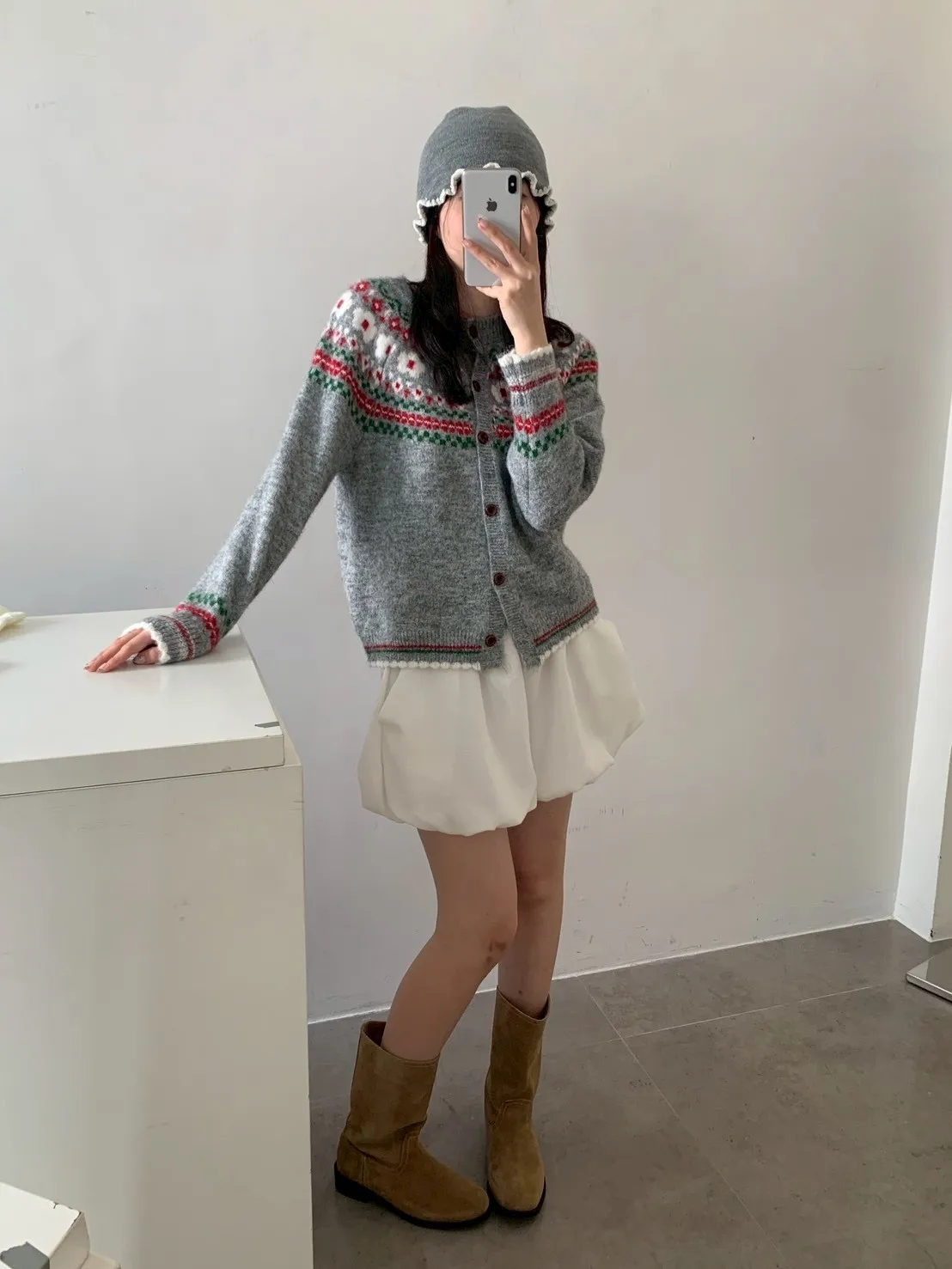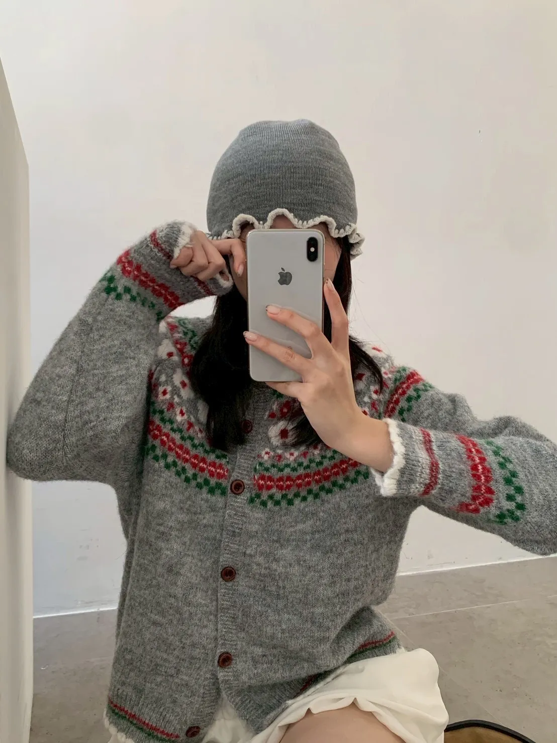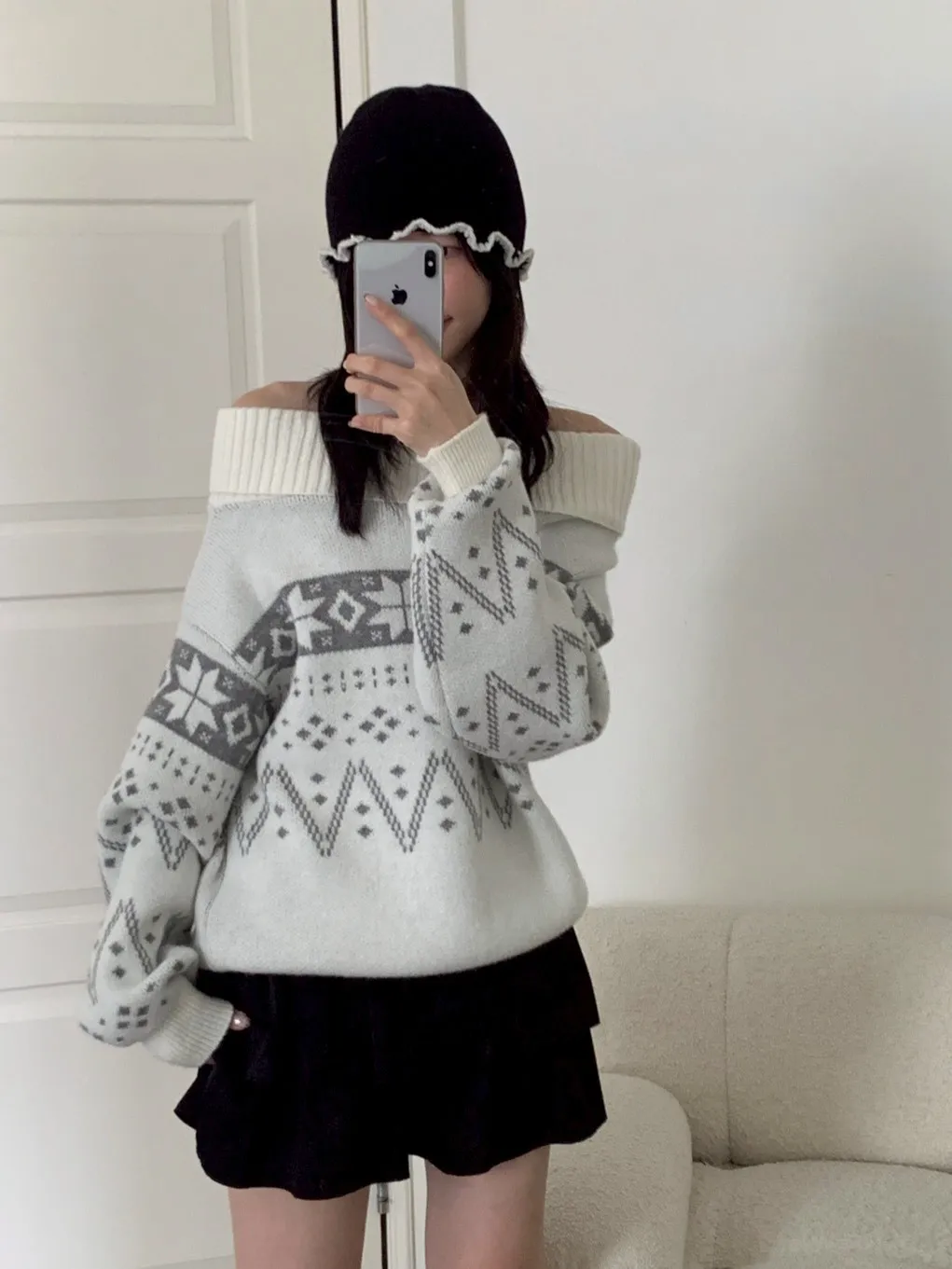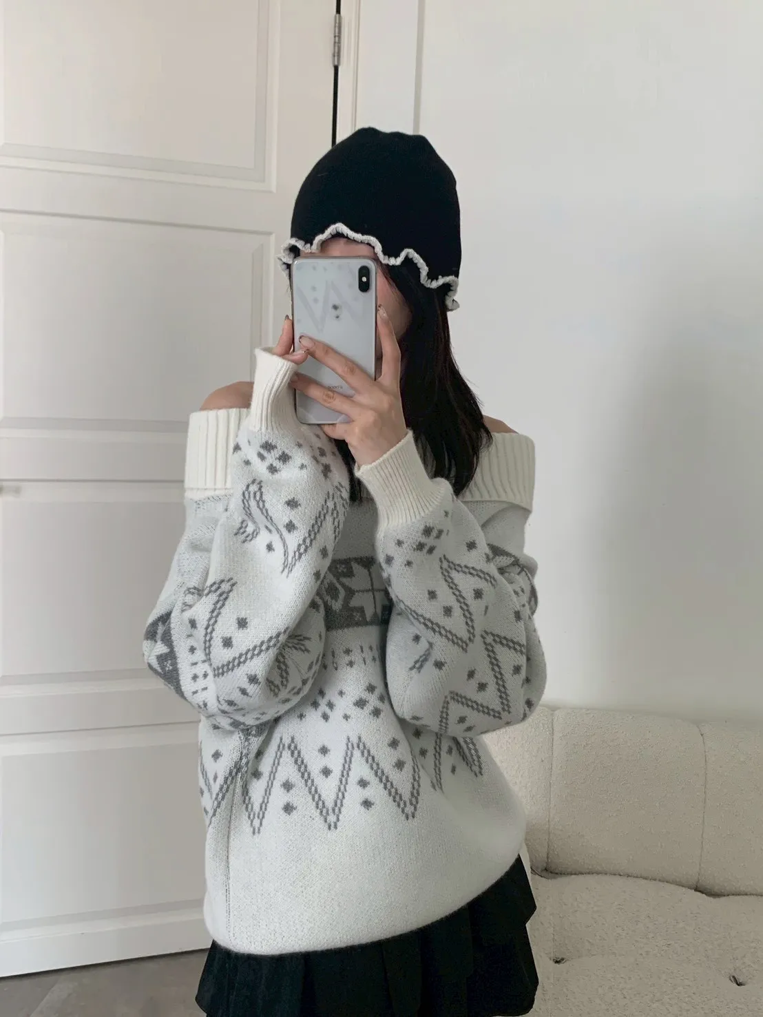 撞色捲邊珍珠毛帽