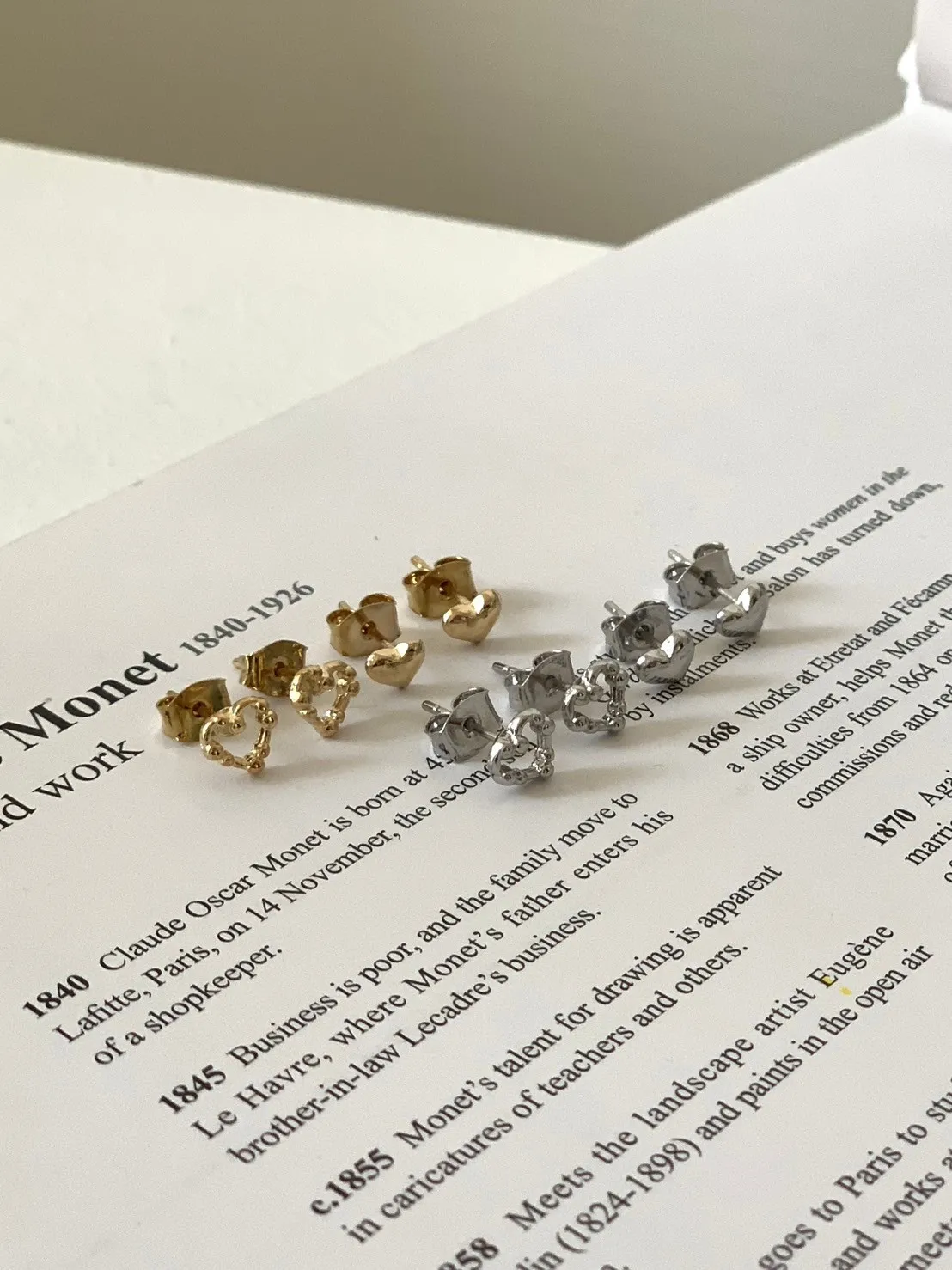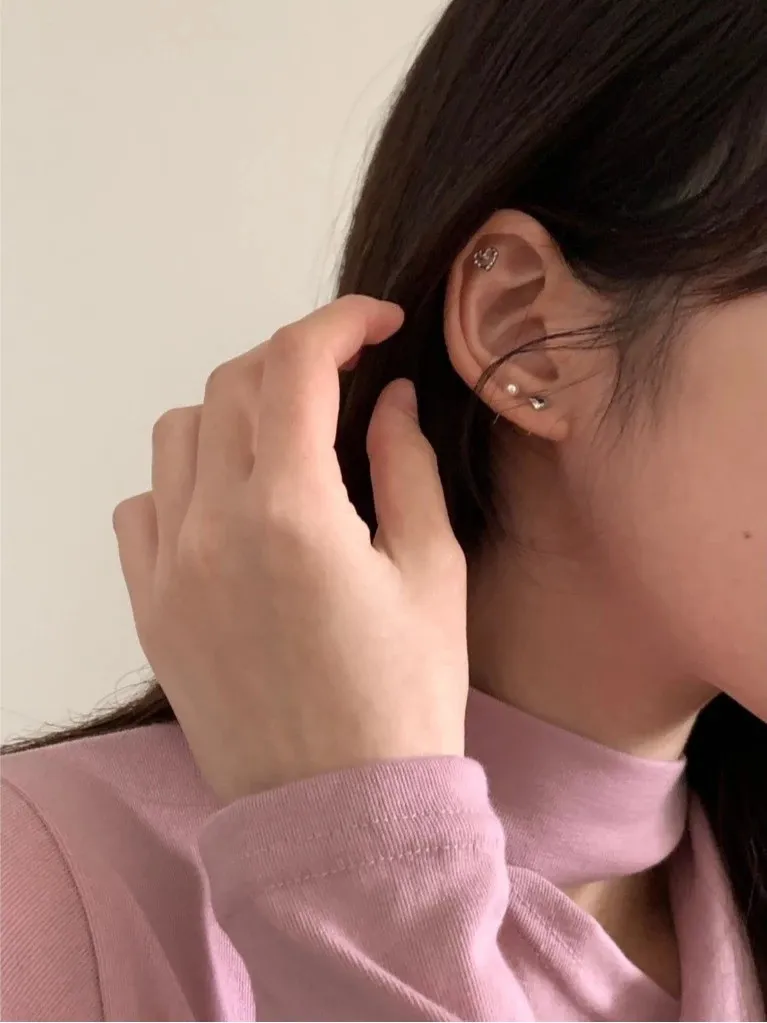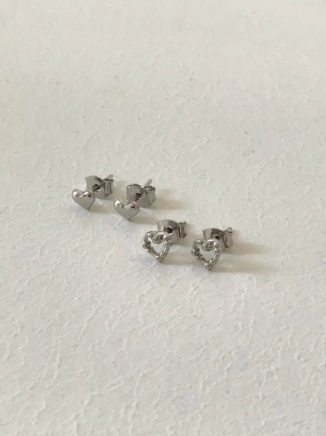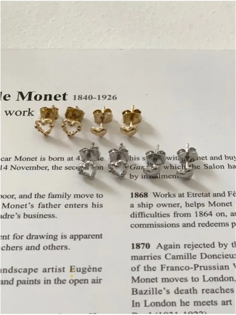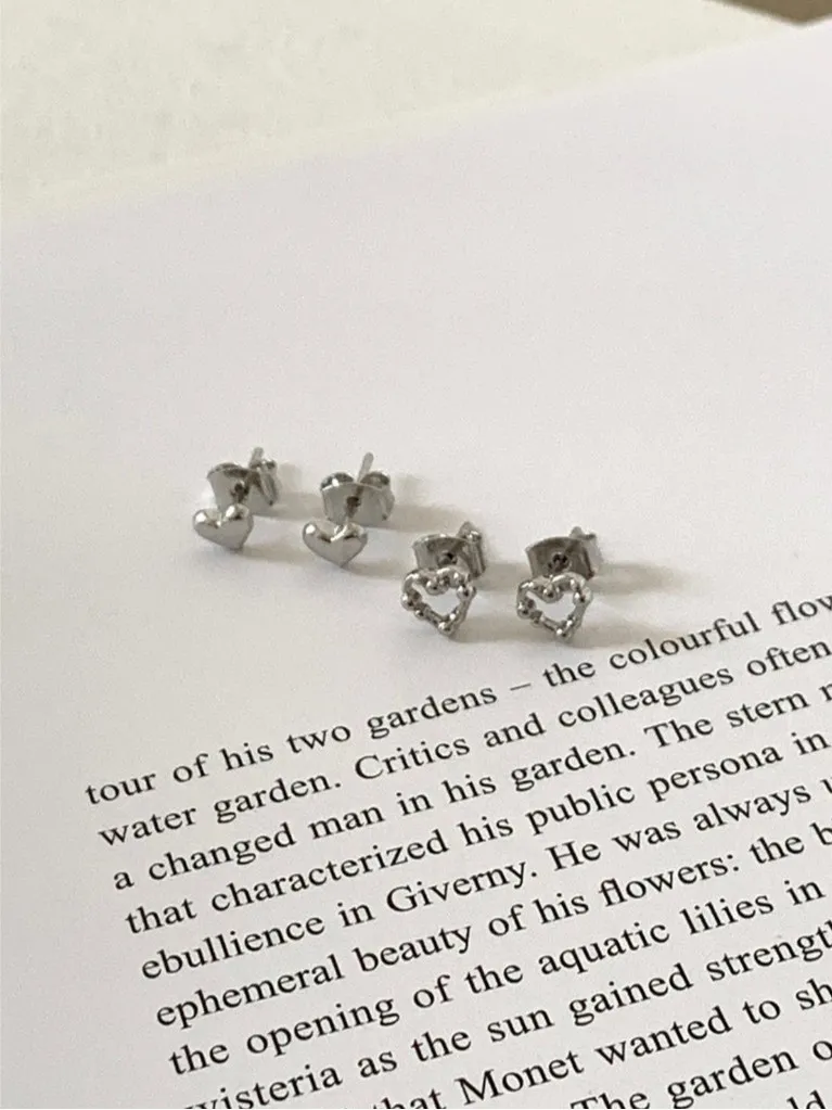 小珠簍空愛心/實心愛心 4件組耳針