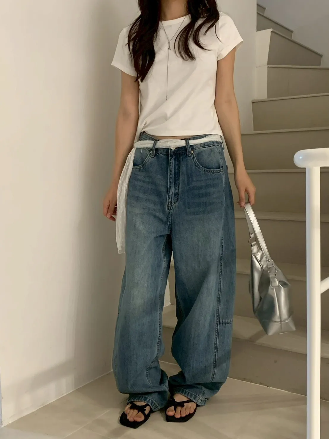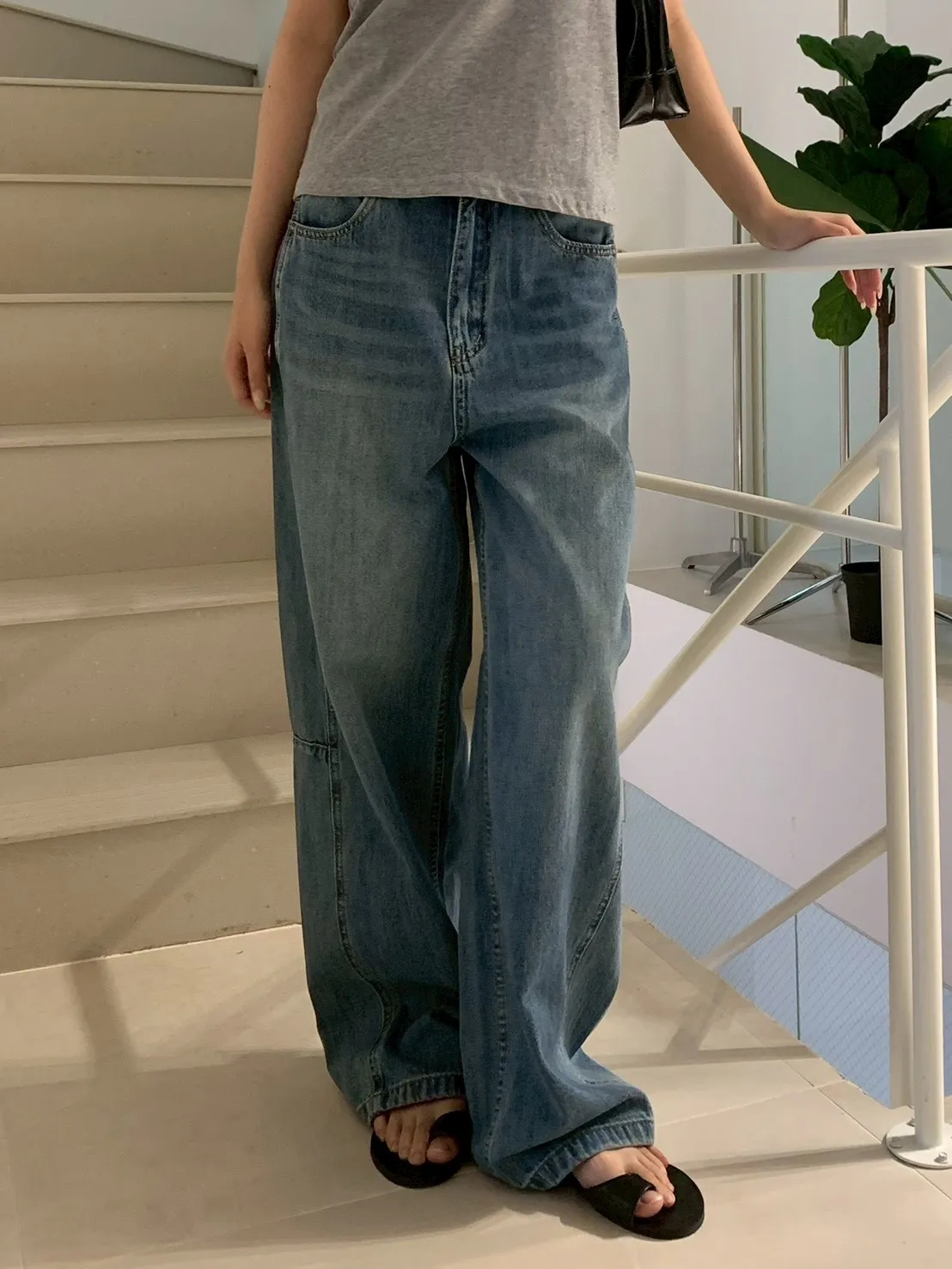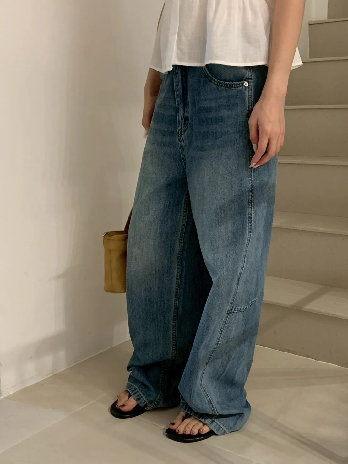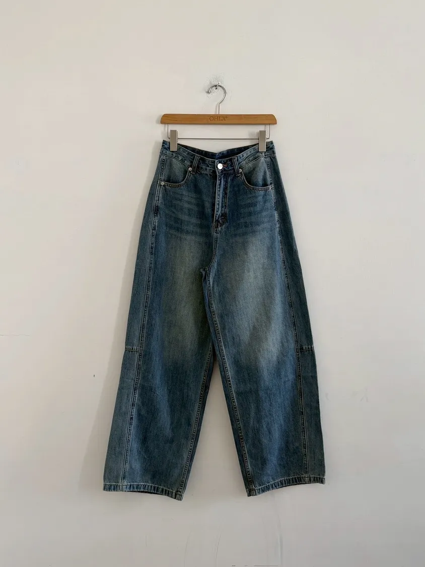 內縮車線牛仔彎刀長褲8258