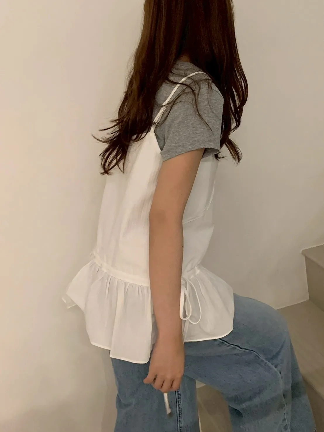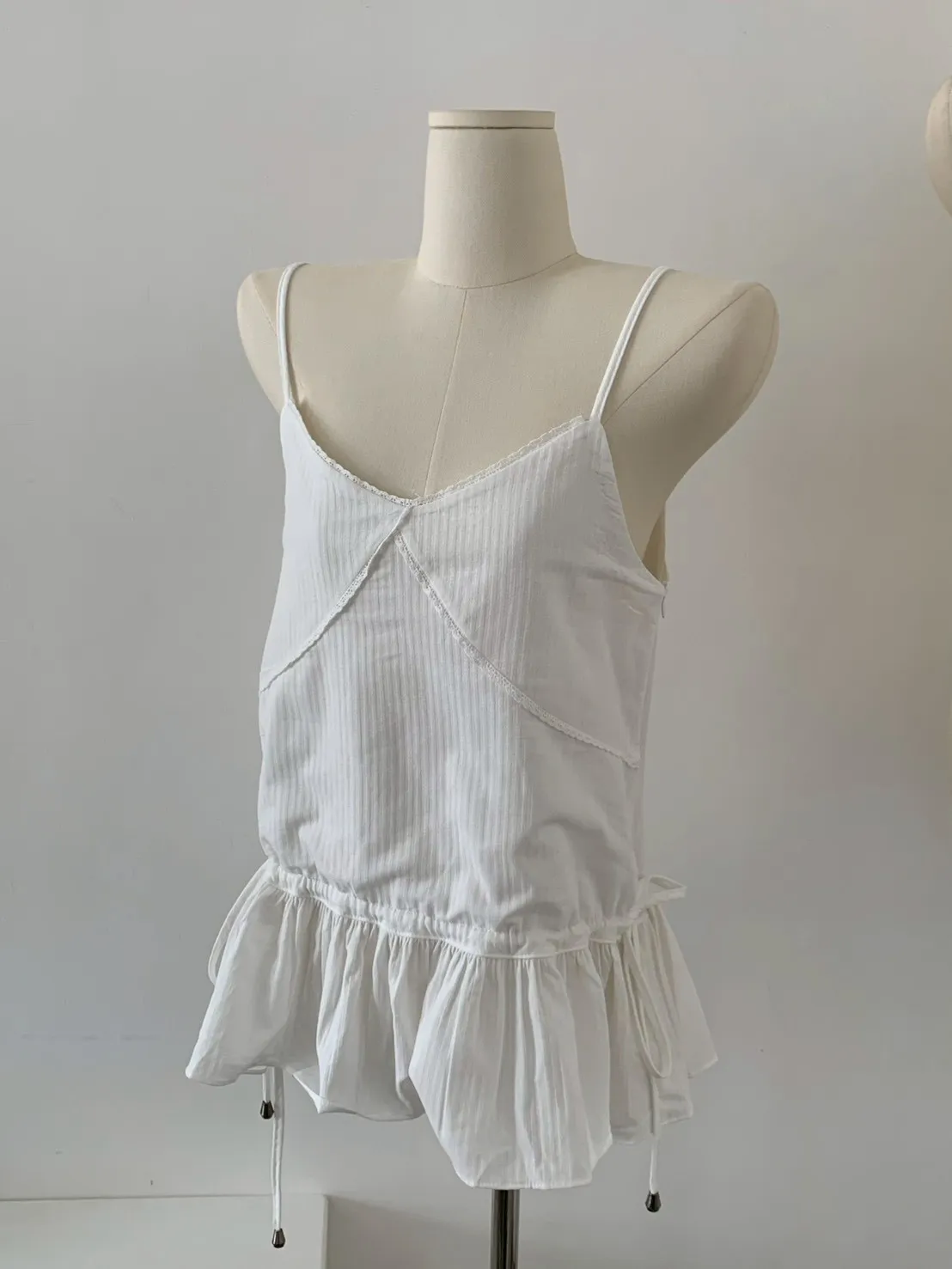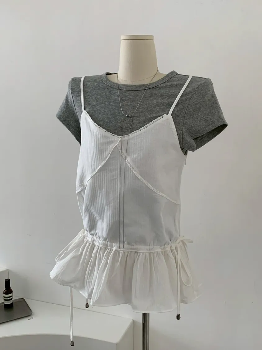 胸蕾絲腰抽繩裙擺細肩上衣