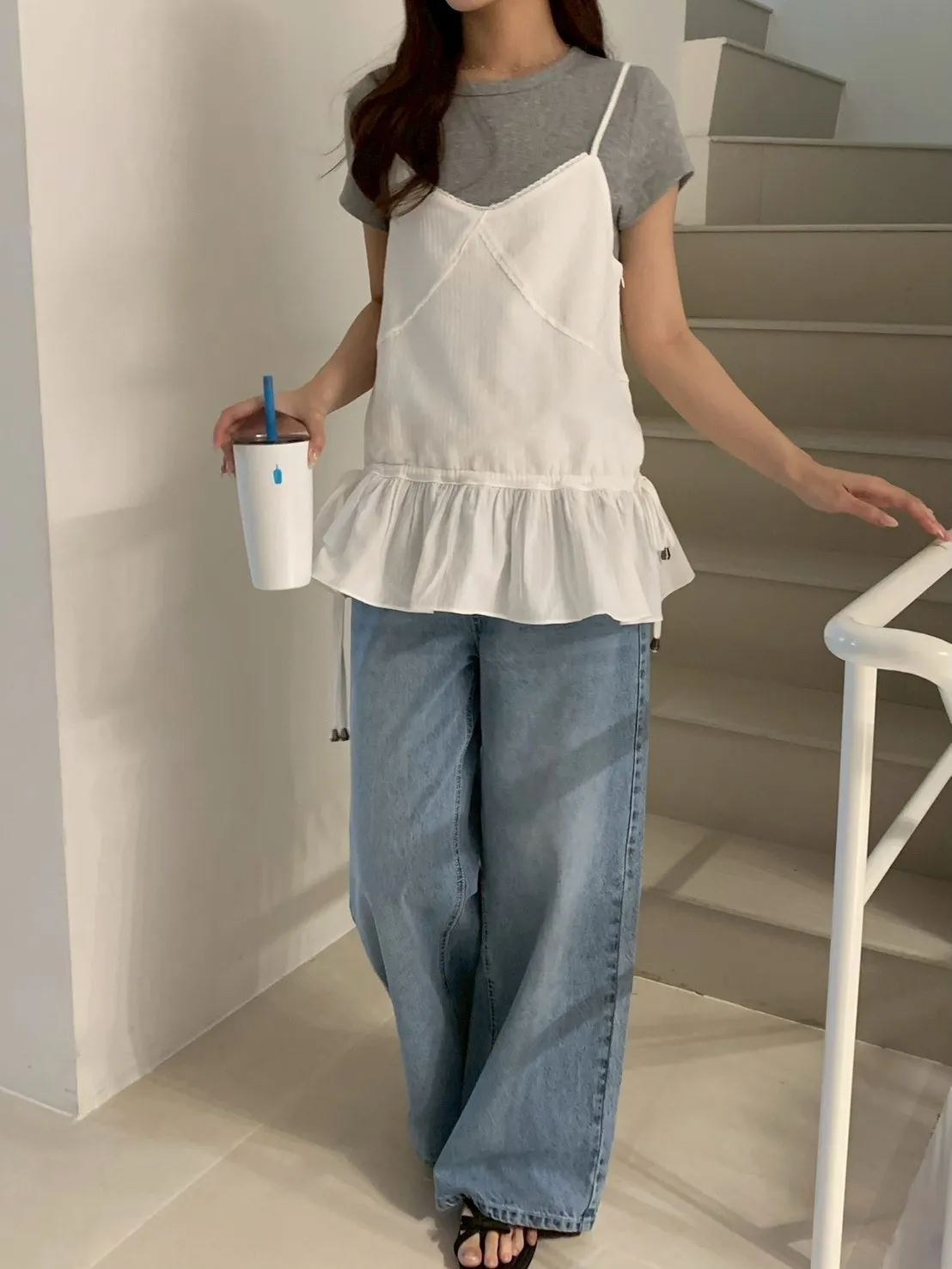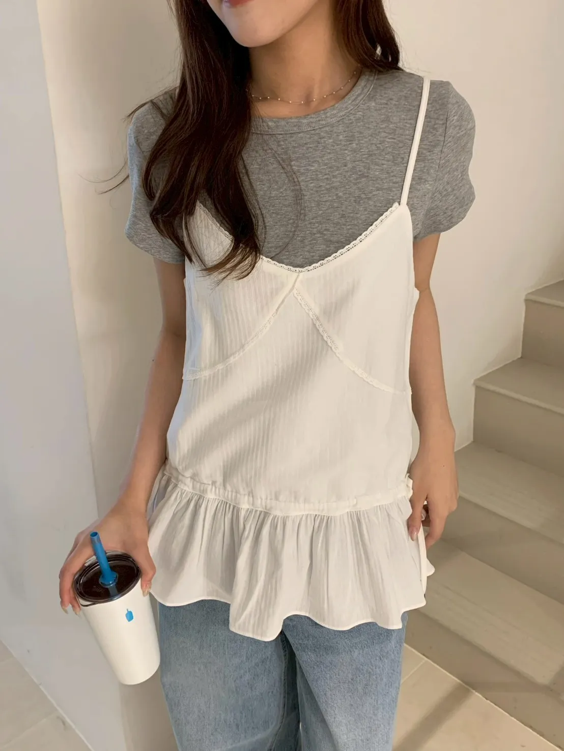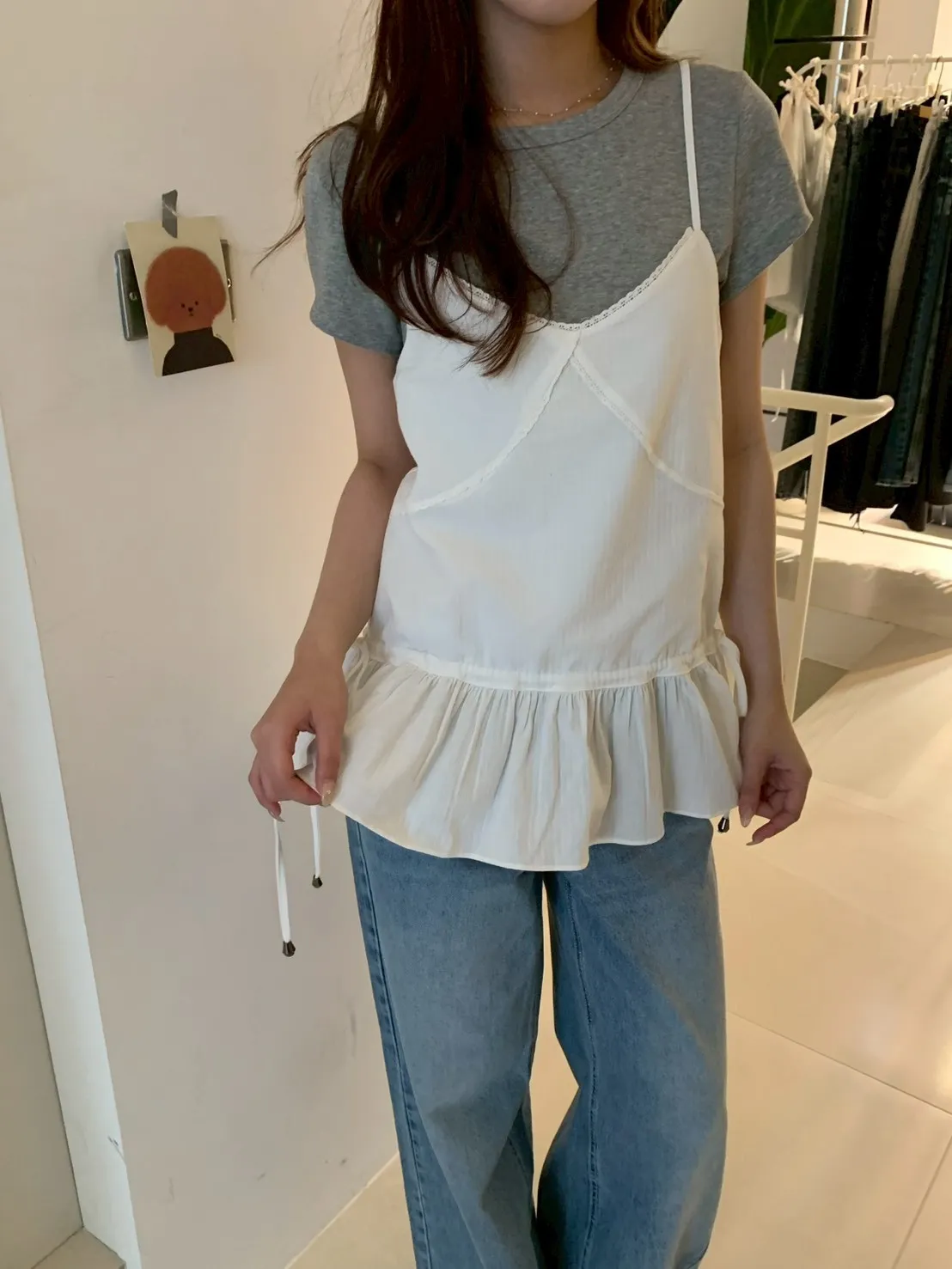 胸蕾絲腰抽繩裙擺細肩上衣