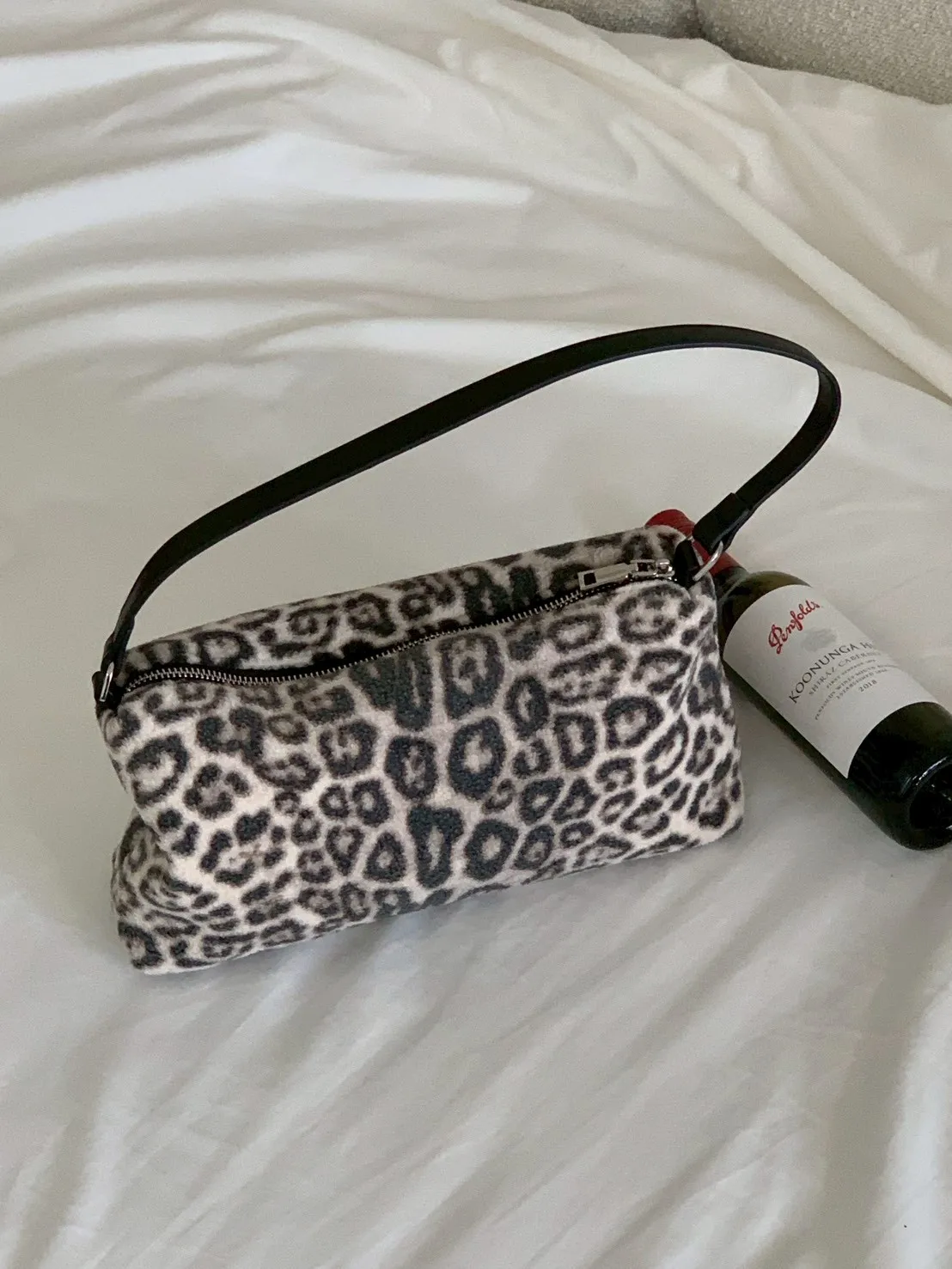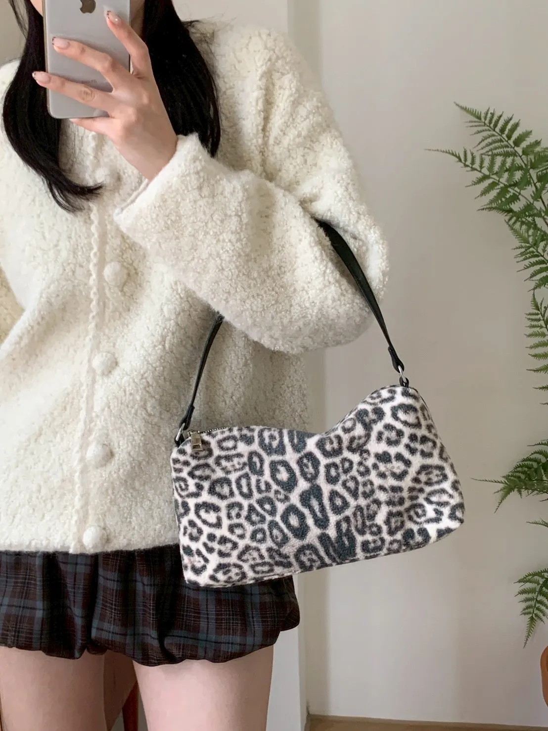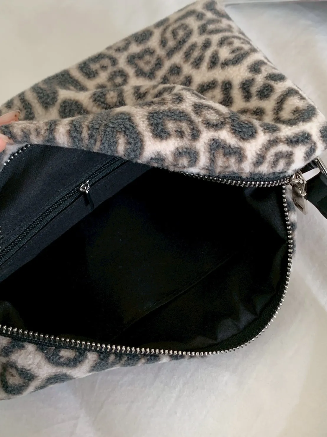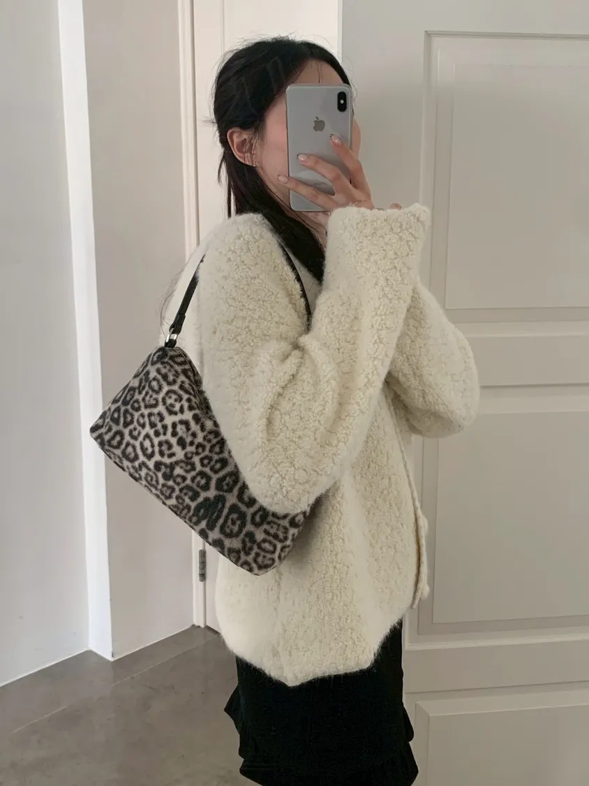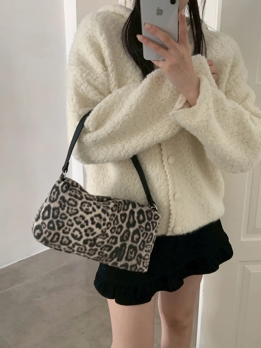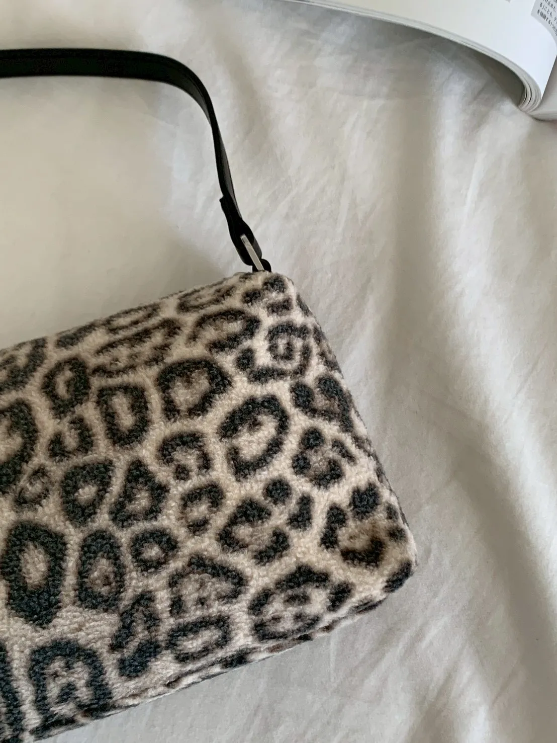 豹紋羊羔毛拉鍊長方腋下包