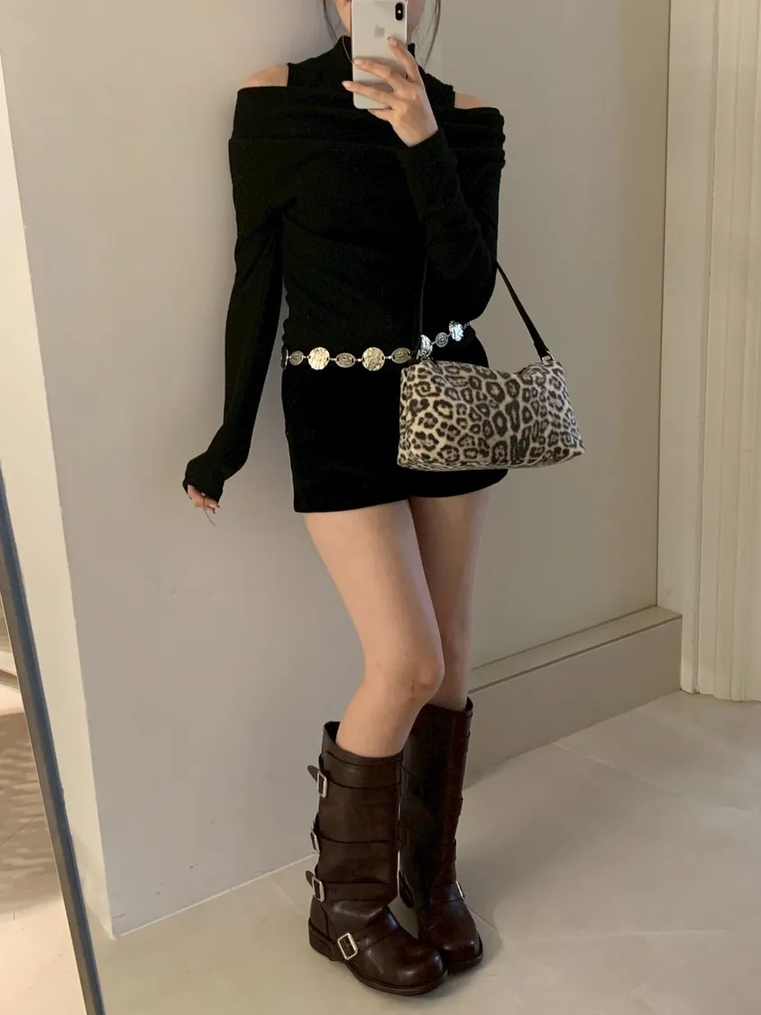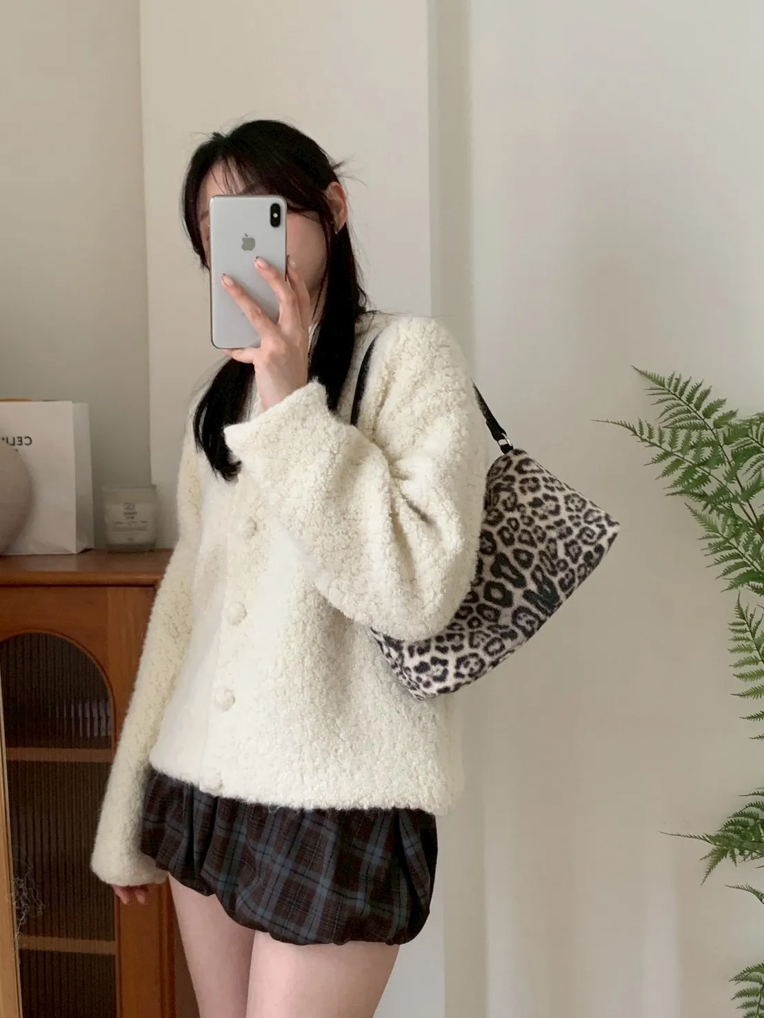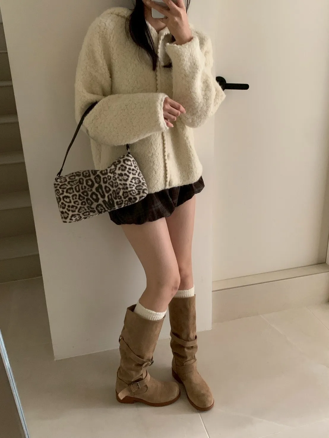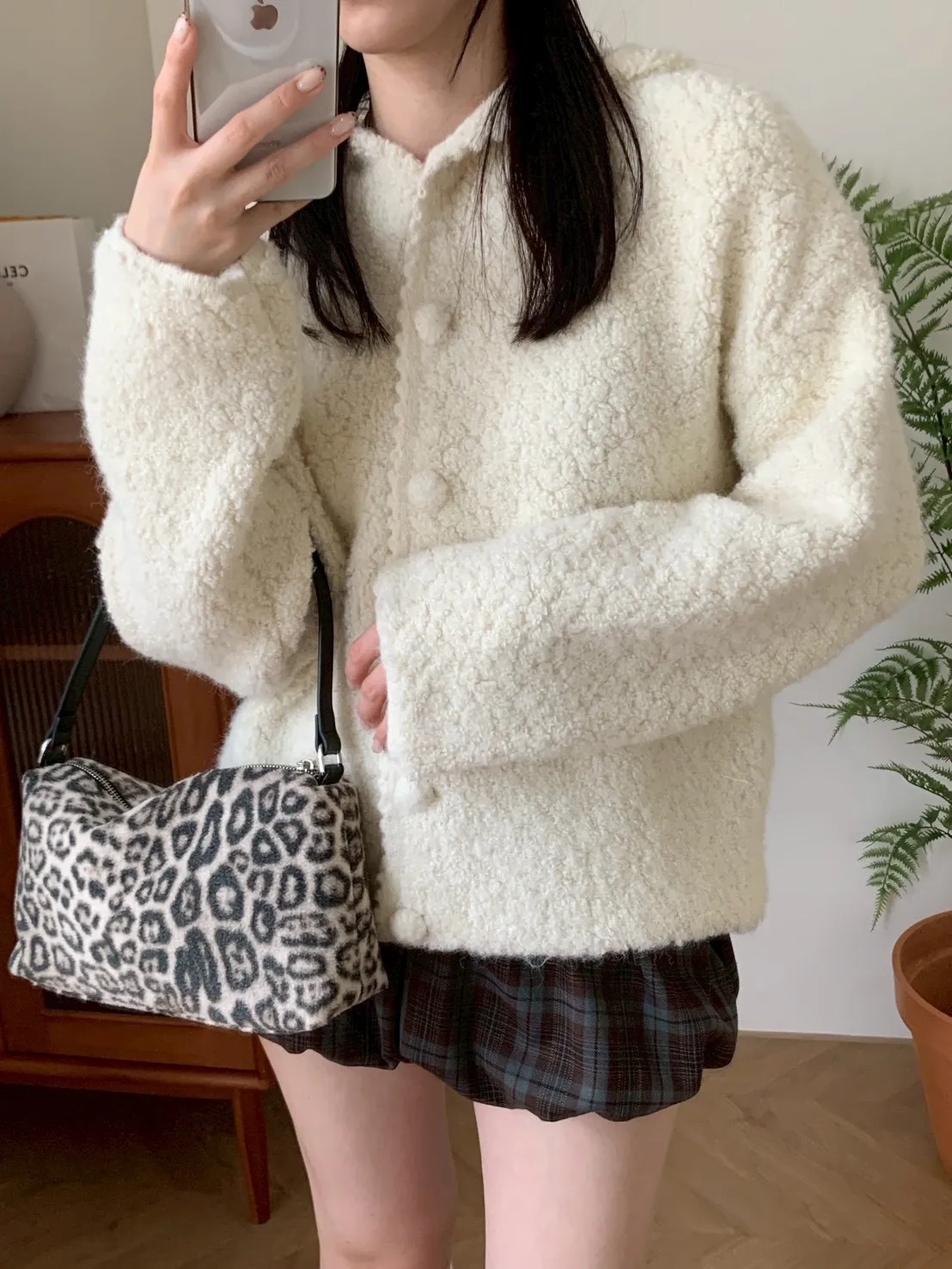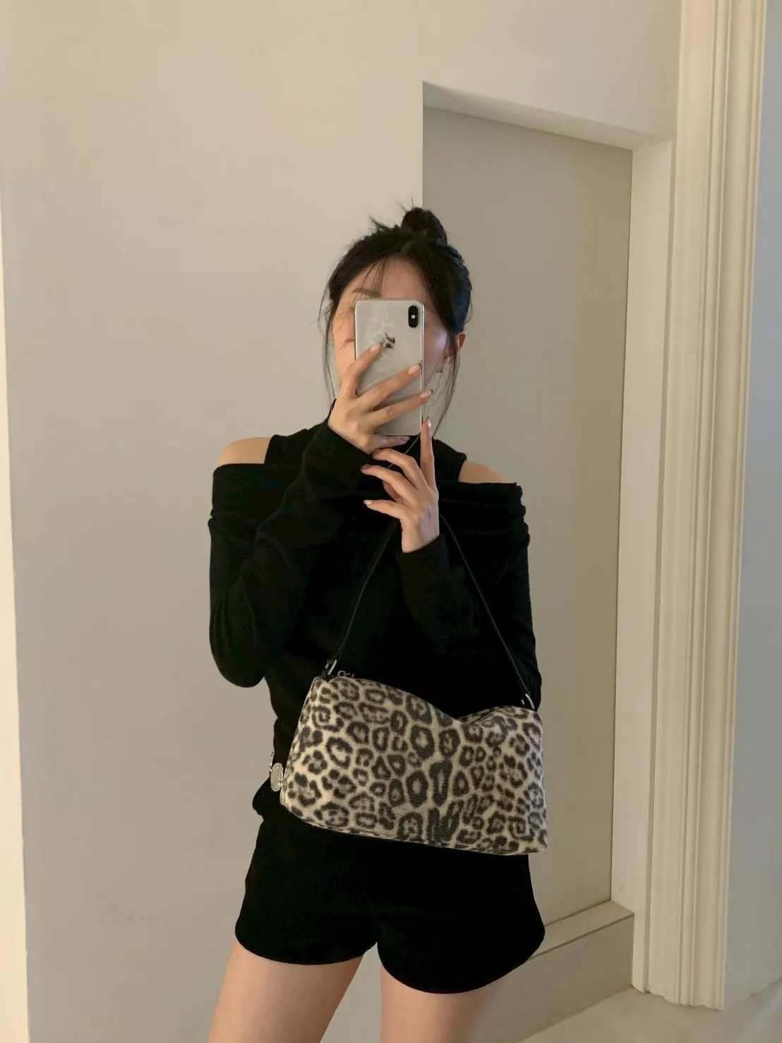 豹紋羊羔毛拉鍊長方腋下包