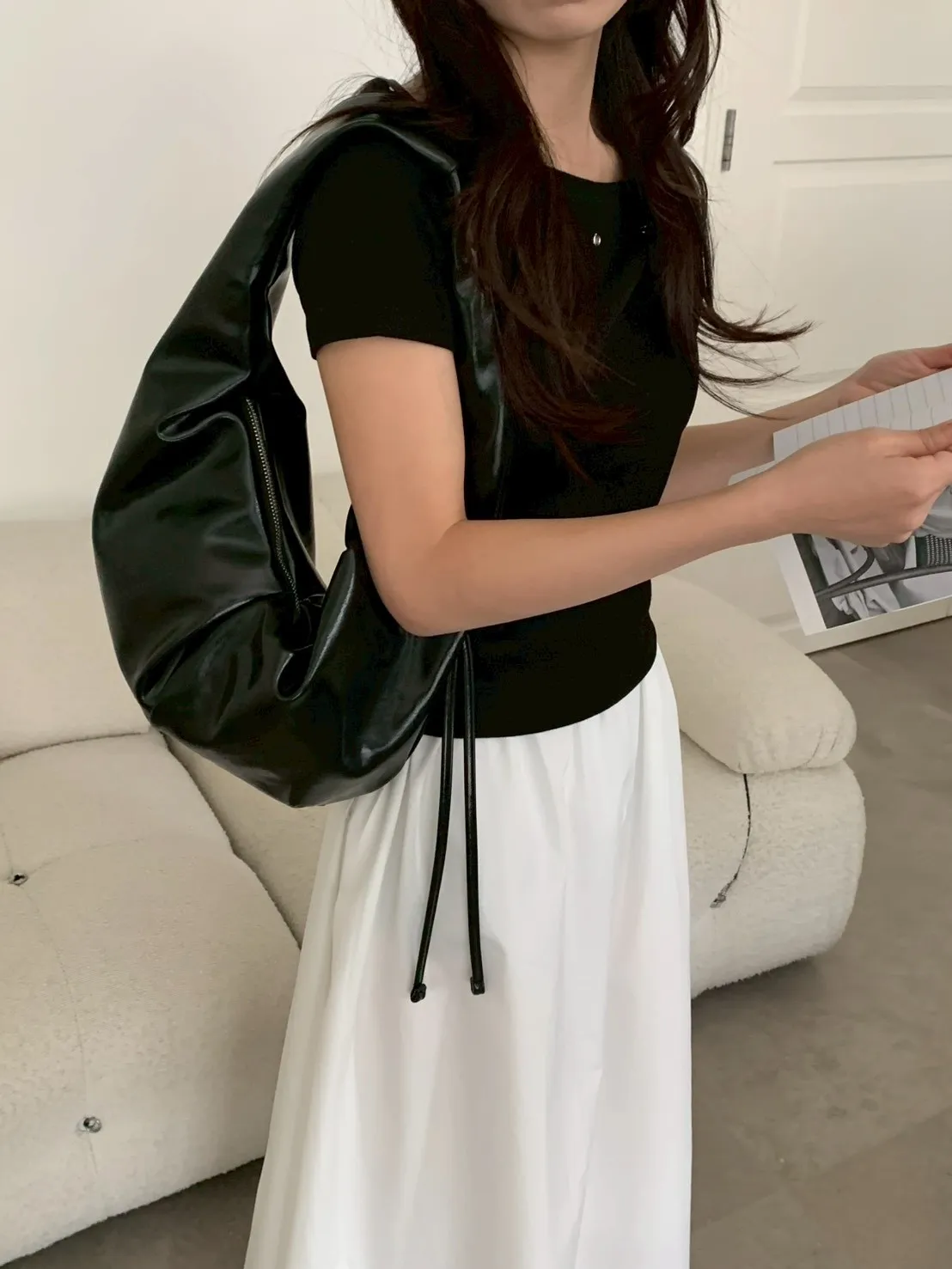 掛繩打摺亮皮牛角包